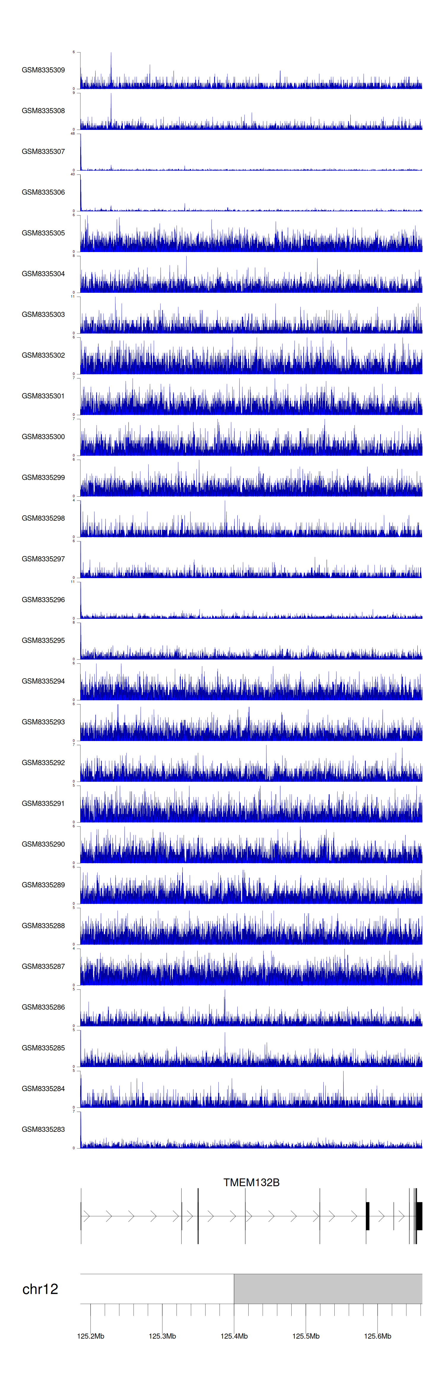 > Dataset: GSE270130 - TMEM132B peak across samples
