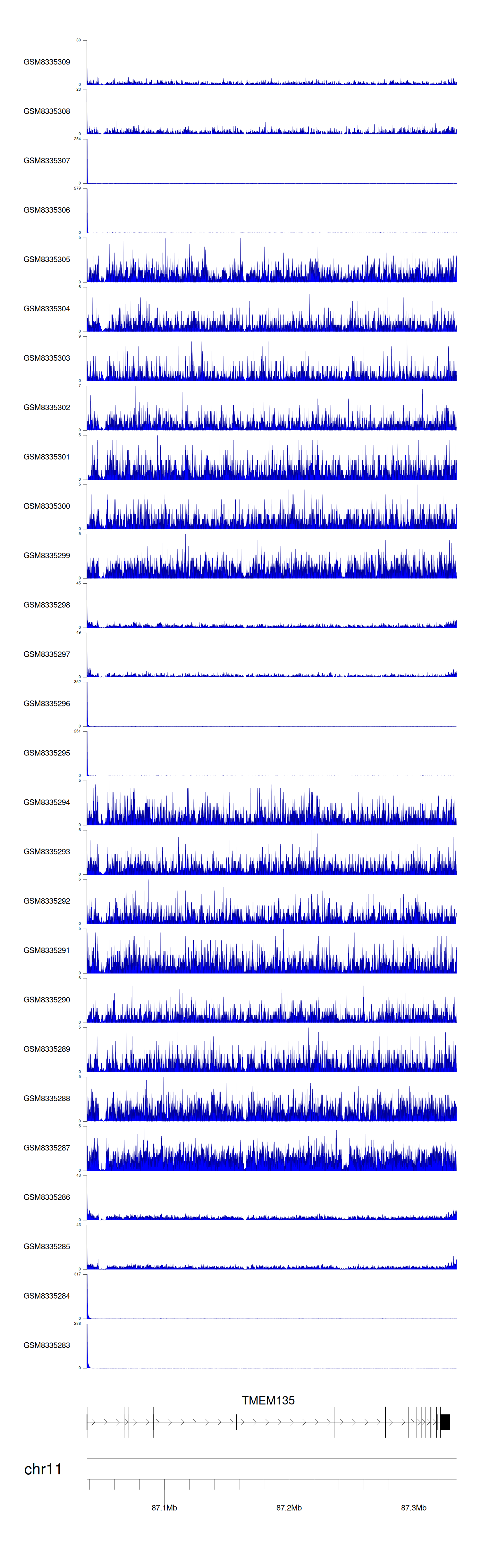 > Dataset: GSE270130 - TMEM135 peak across samples
