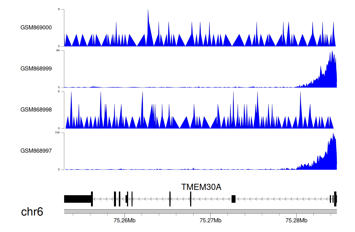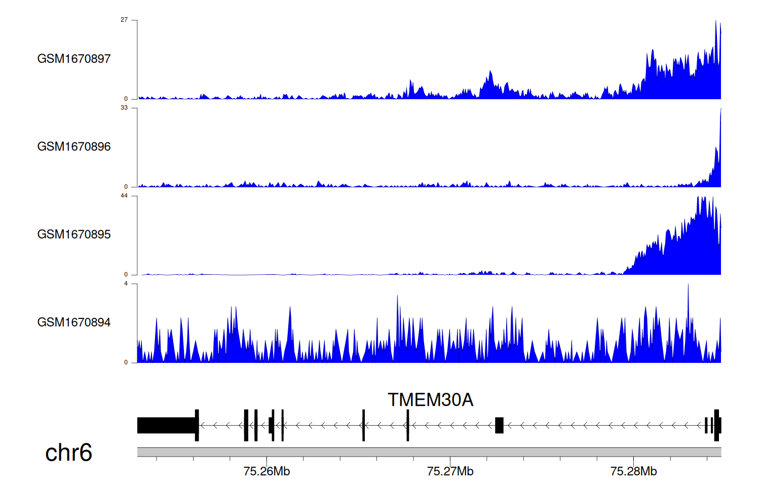 > Dataset: GSE68402 - TMEM30A peak across samples