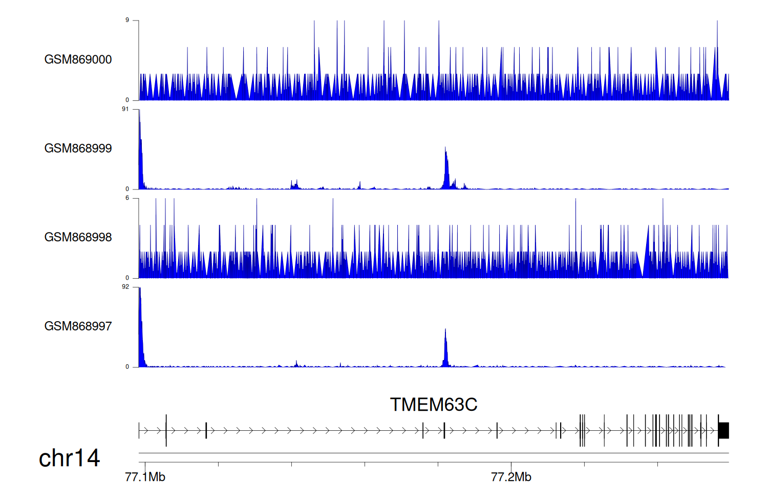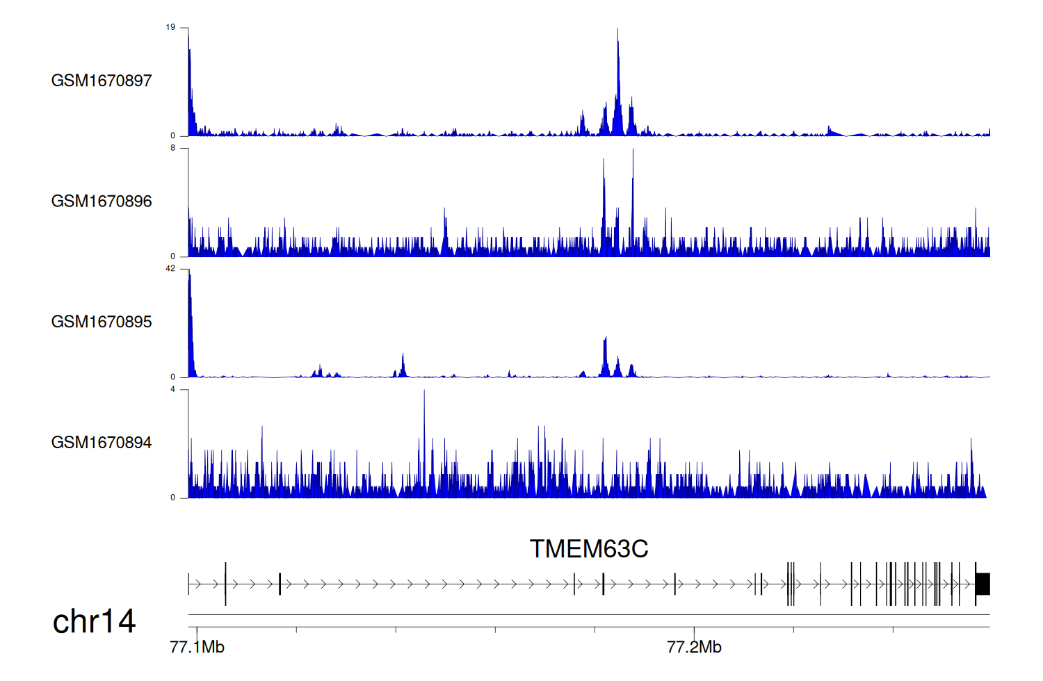 > Dataset: GSE68402 - TMEM63C peak across samples