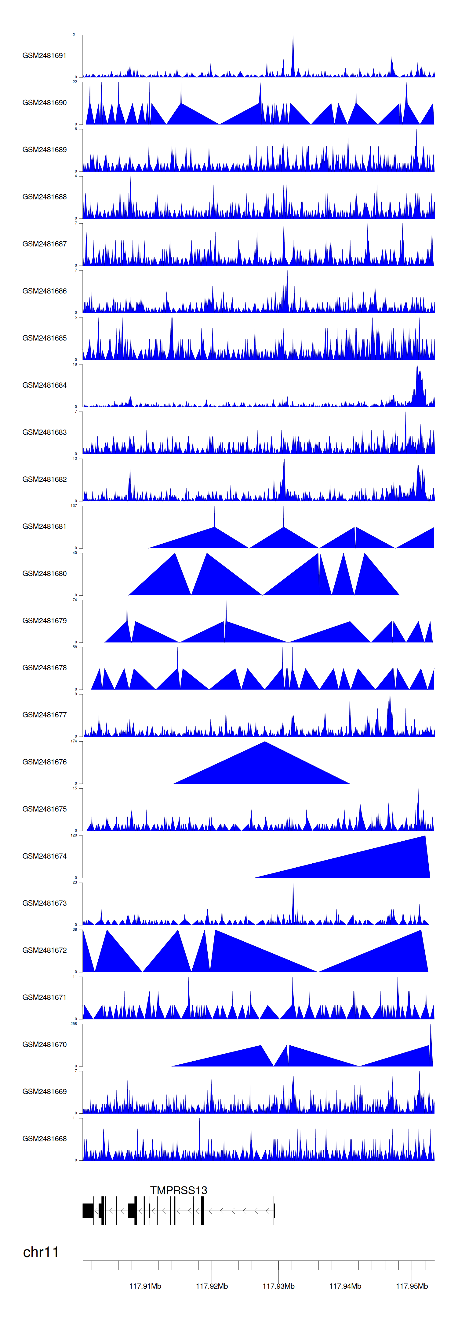 > Dataset: GSE94732 - TMPRSS13 peak across samples
