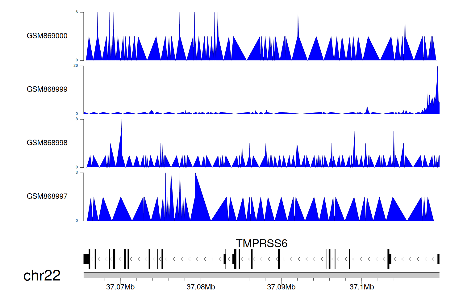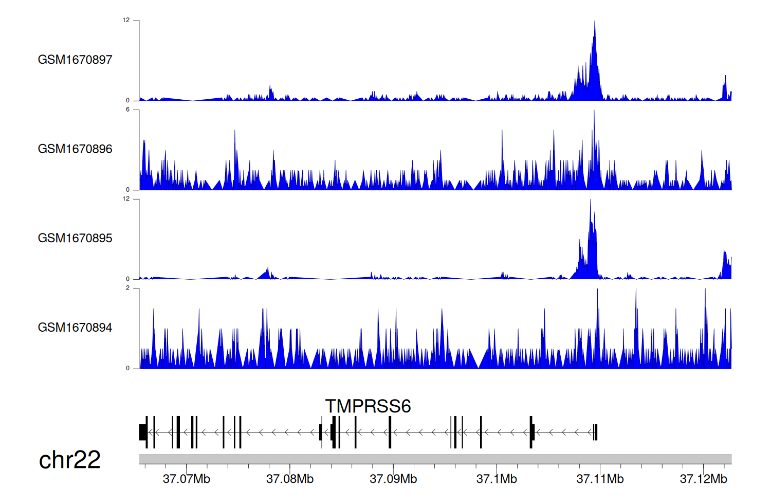 > Dataset: GSE68402 - TMPRSS6 peak across samples