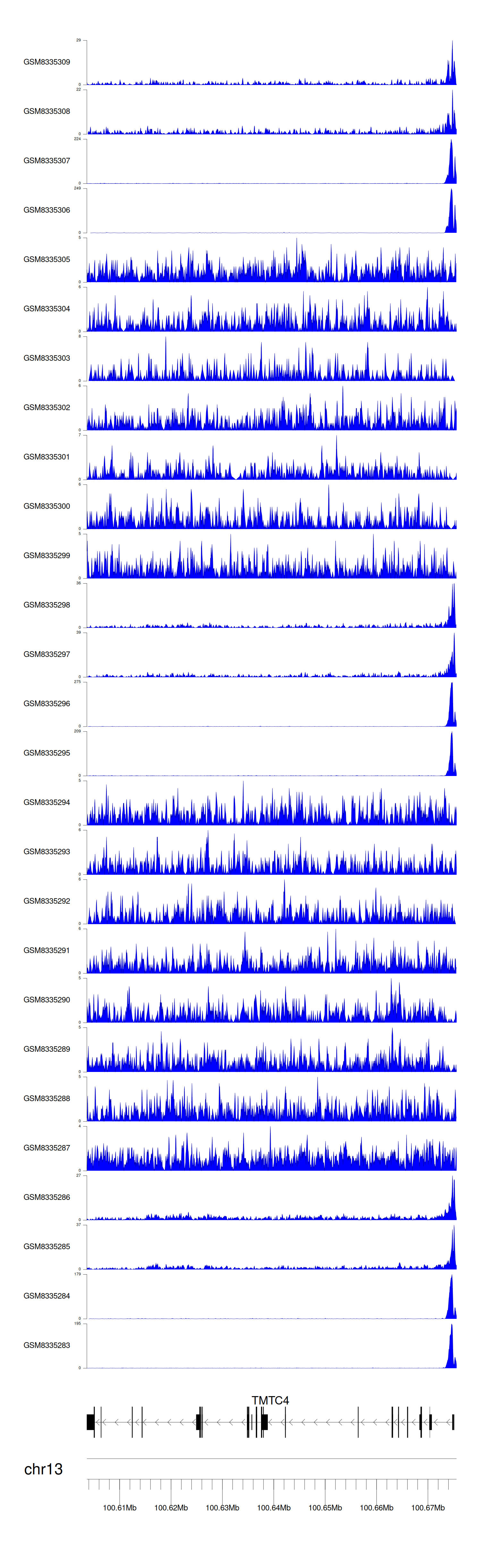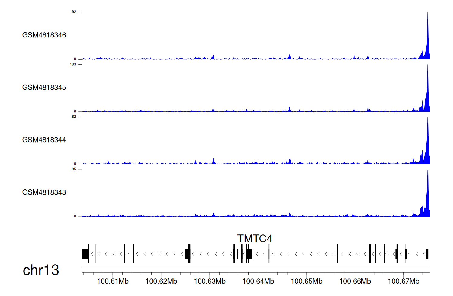 > Dataset: GSE131257 - TMTC4 peak across samples
