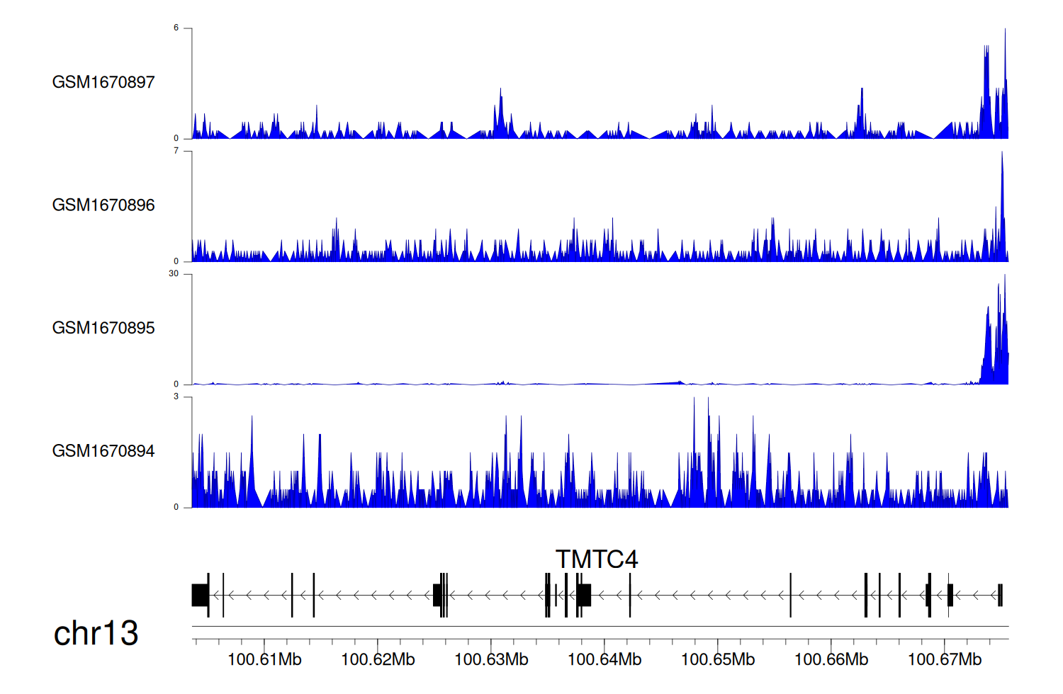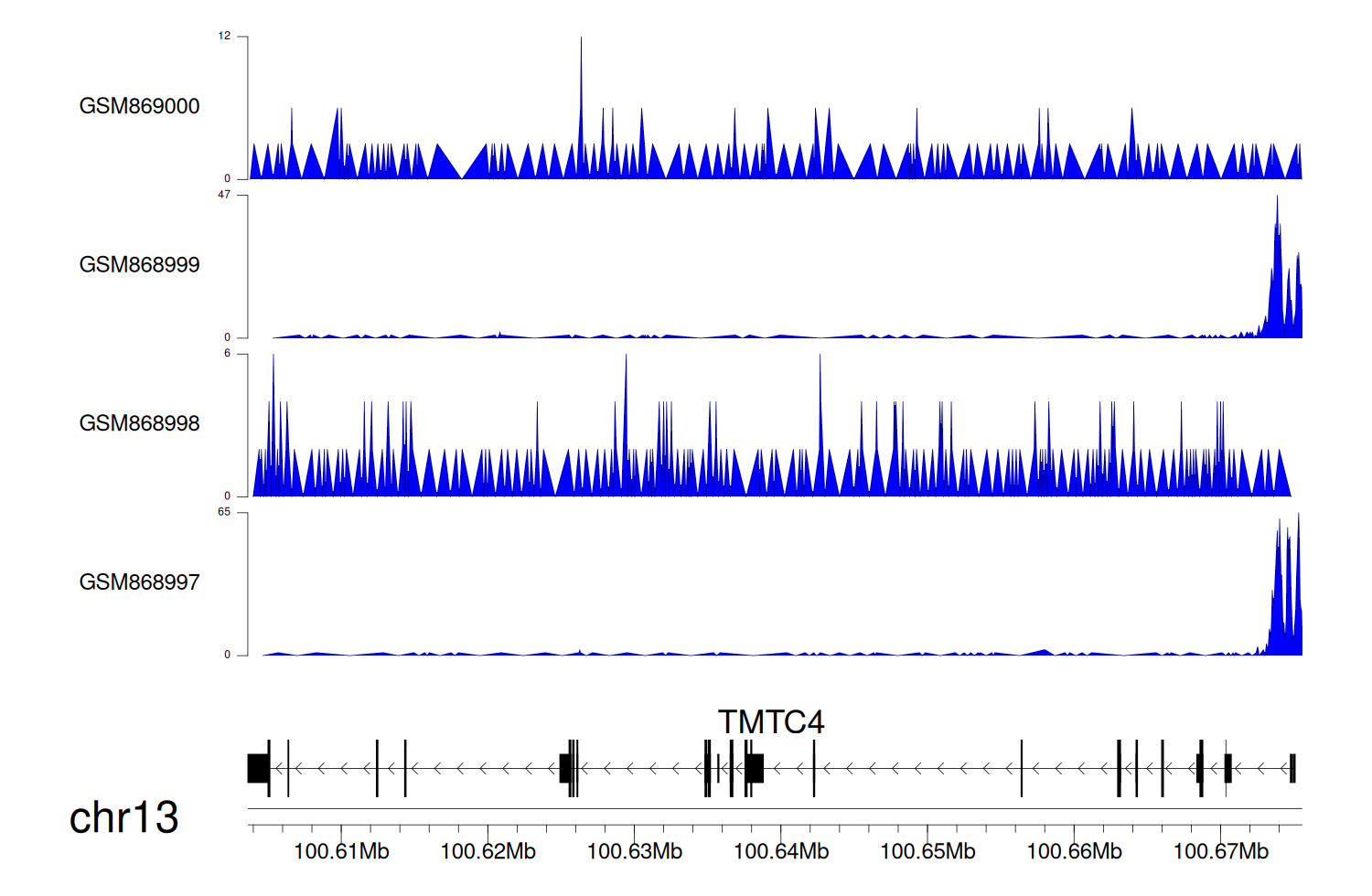 > Dataset: GSE68402 - TMTC4 peak across samples