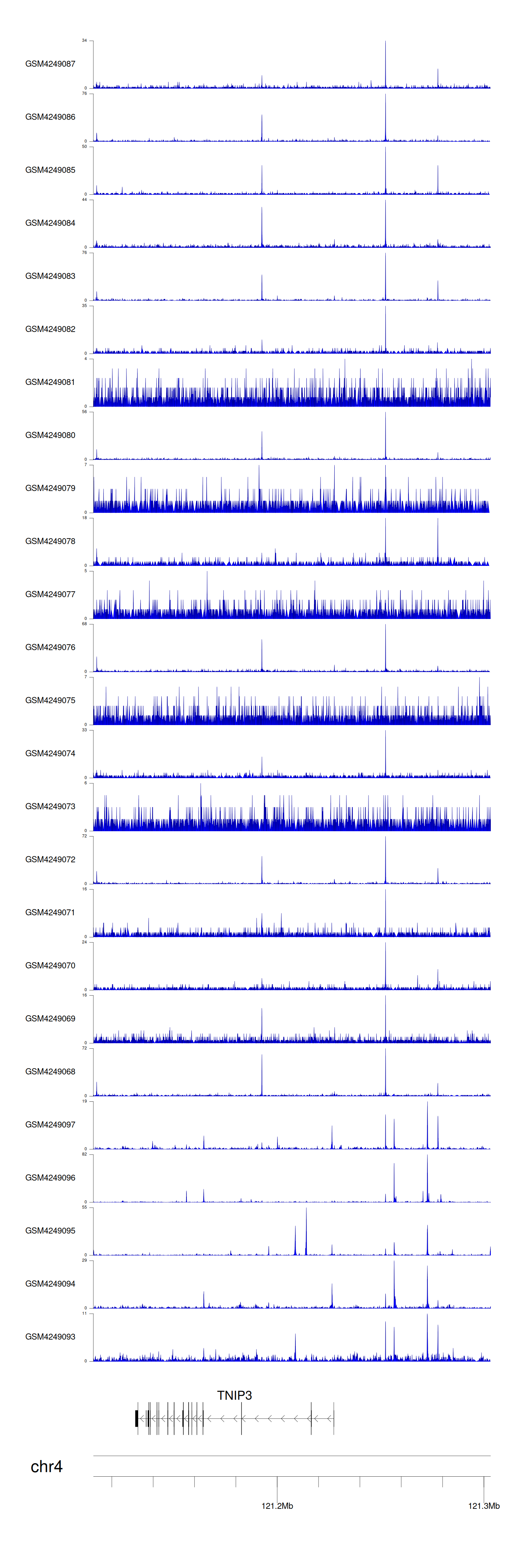 > Dataset: GSE143026 - TNIP3 peak across samples