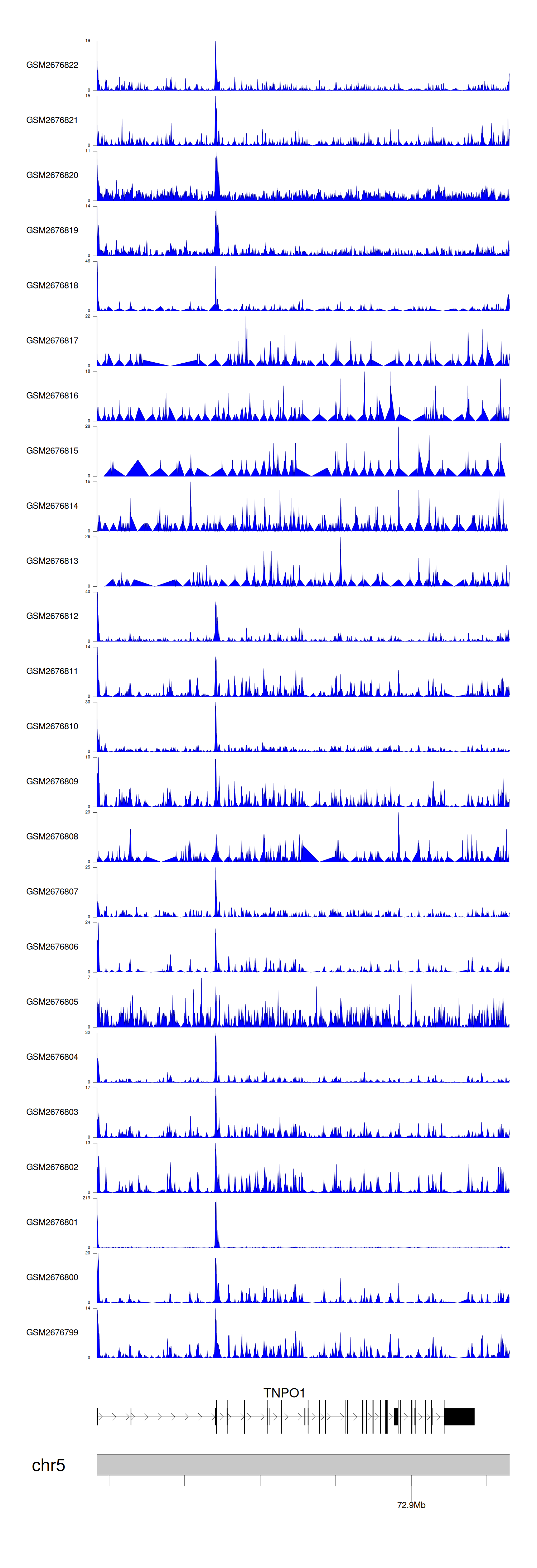 > Dataset: GSE165703 - TNPO1 peak across samples