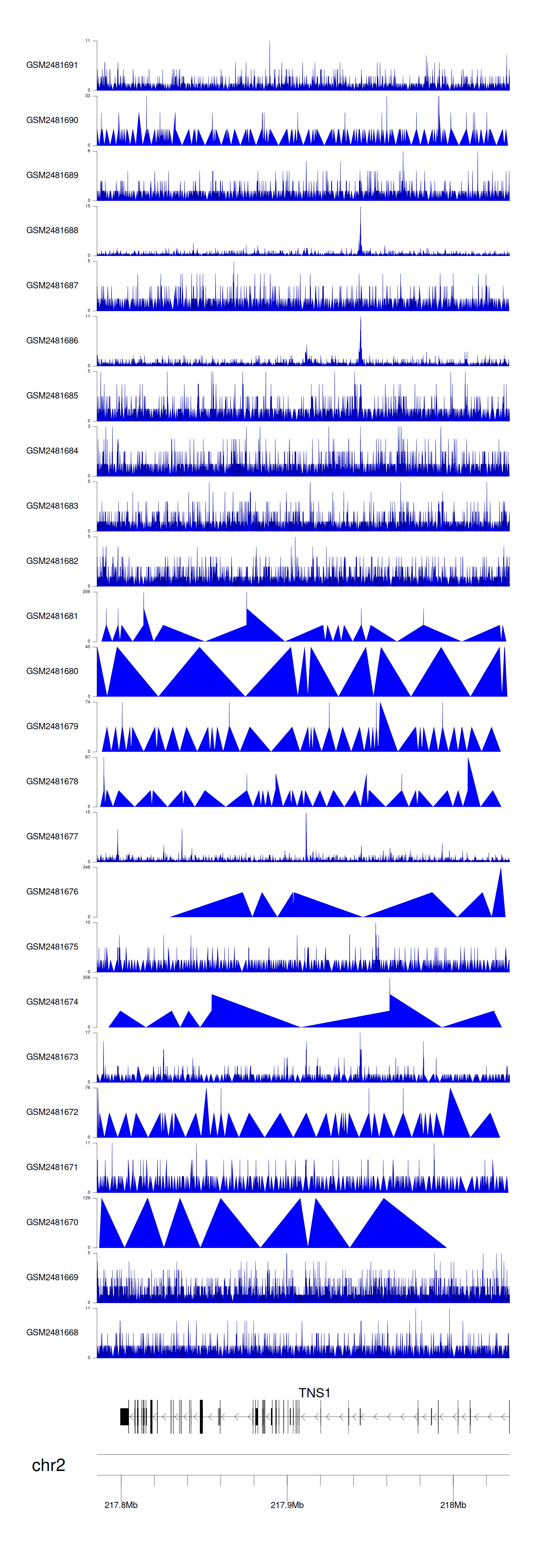 Target gene [TNS1] related to VISs