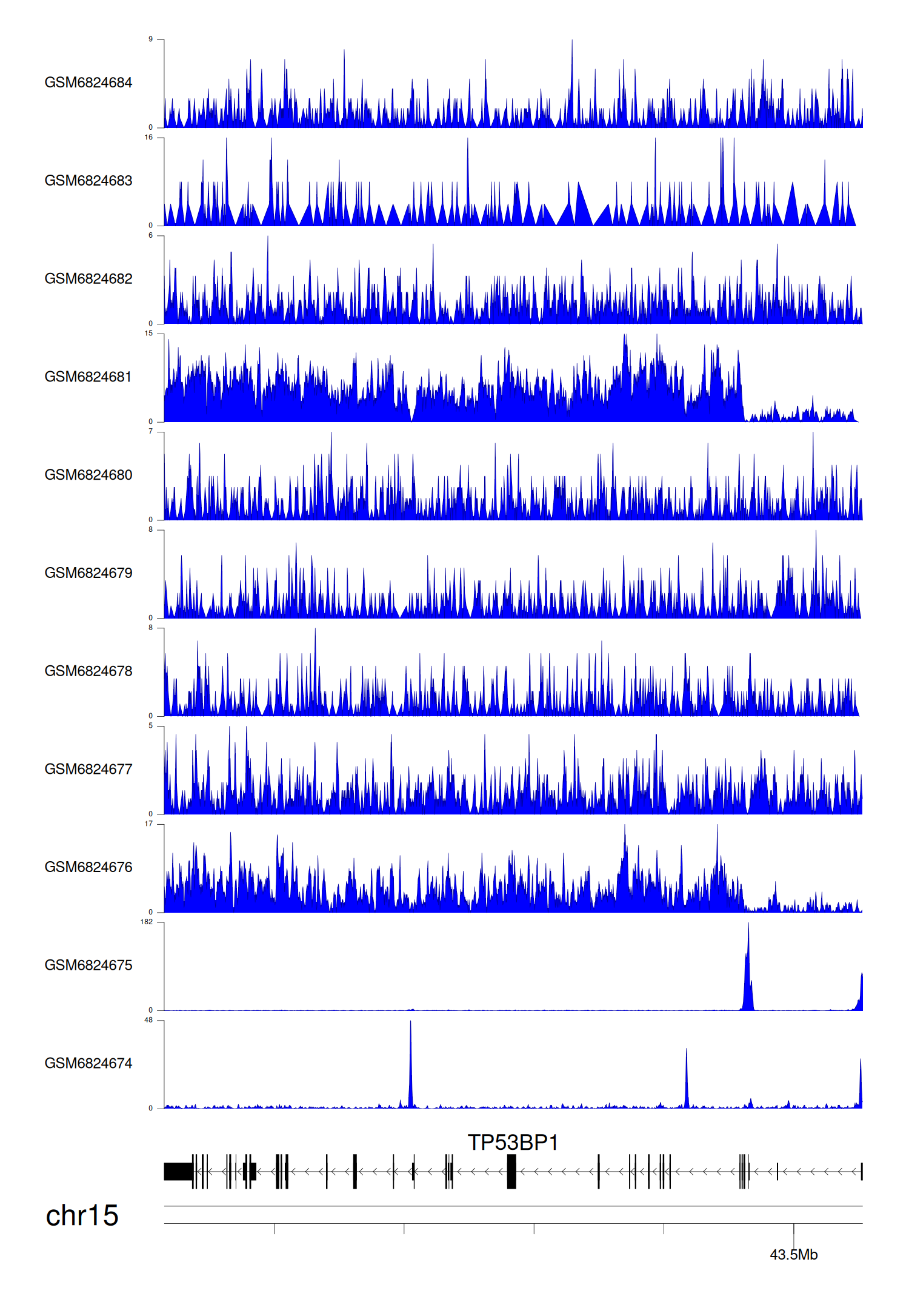 > Dataset: GSE165703 - TP53BP1 peak across samples