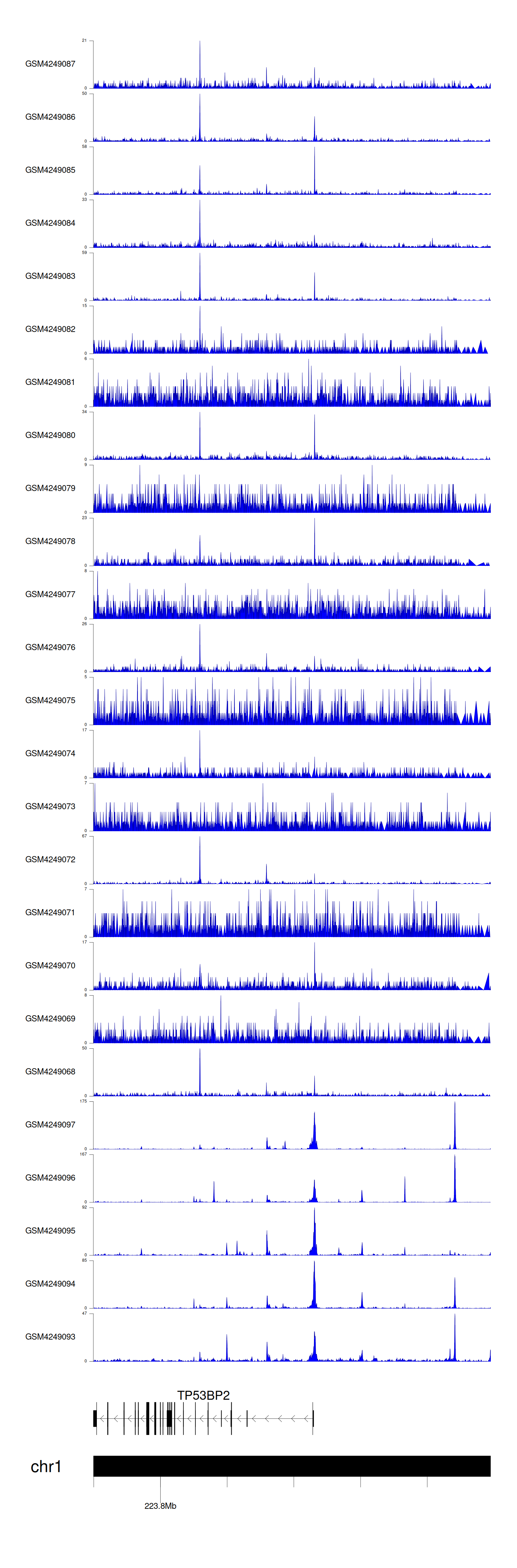 > Dataset: GSE143026 - TP53BP2 peak across samples
