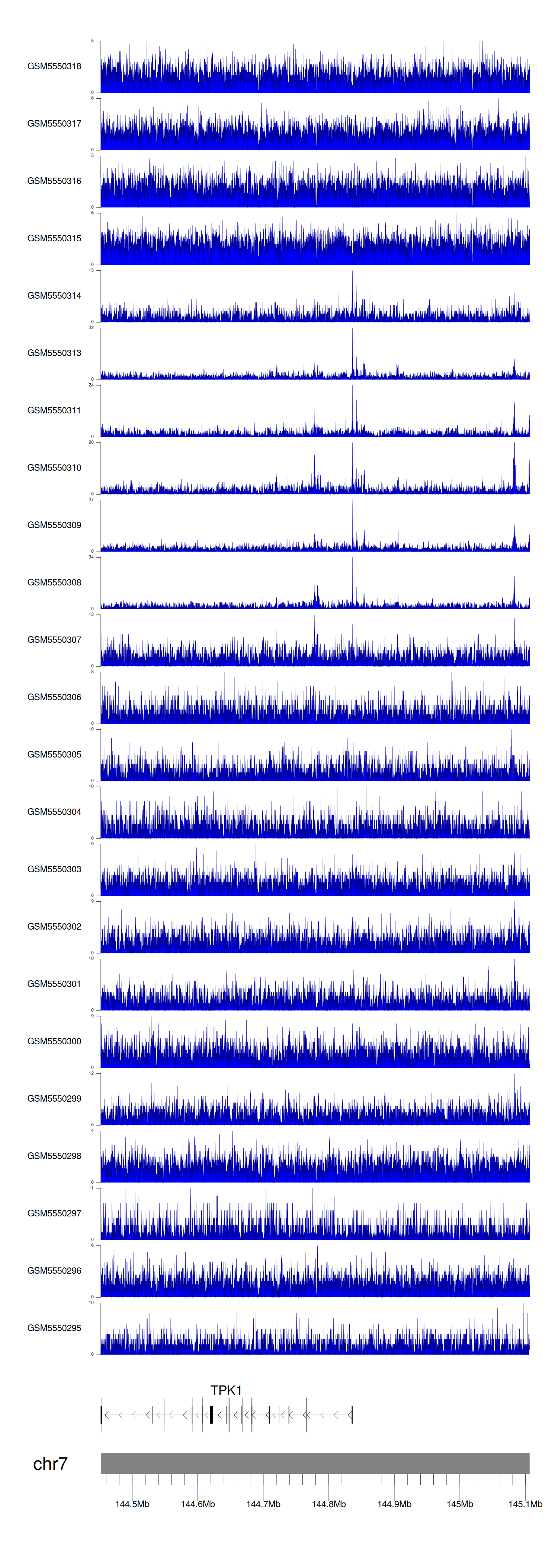 > Dataset: GSE143026 - TPK1 peak across samples