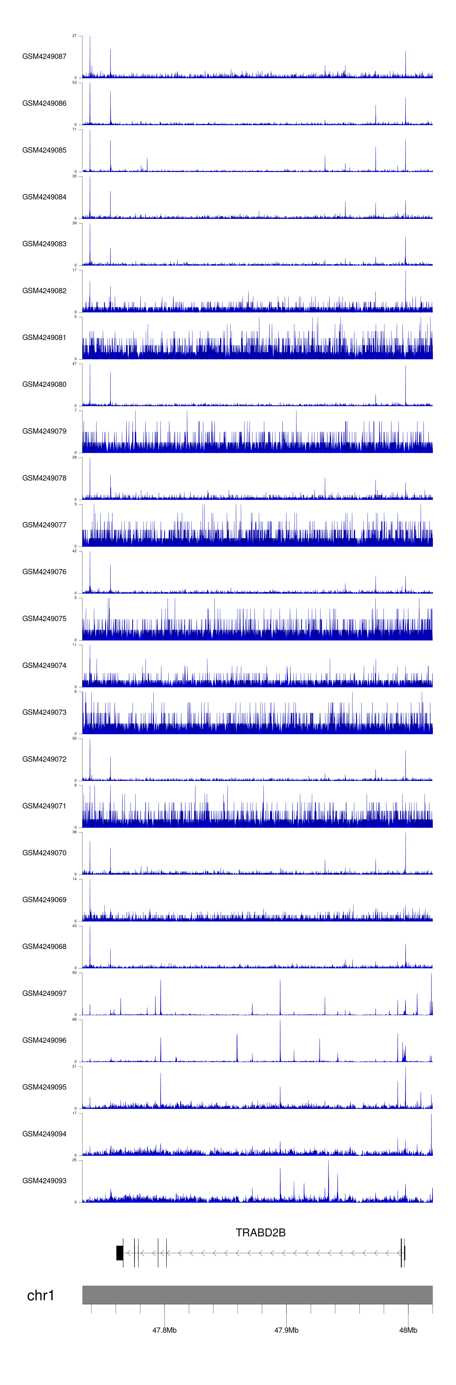 > Dataset: GSE143026 - TRABD2B peak across samples