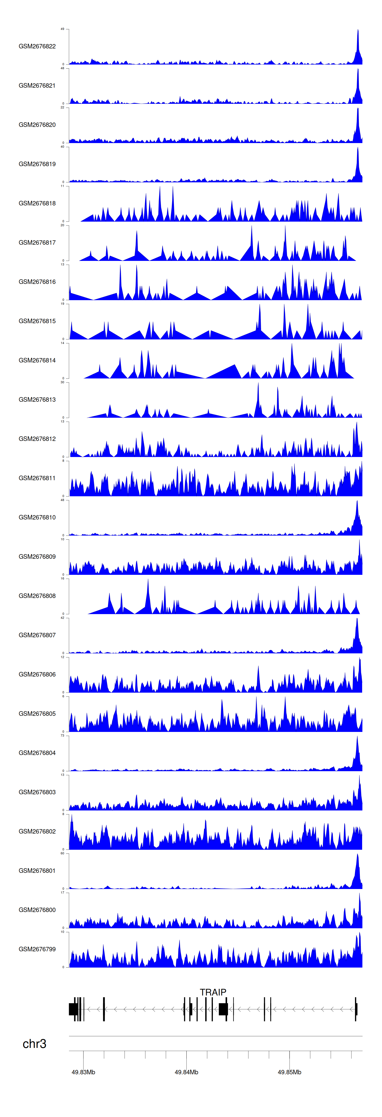 > Dataset: GSE144329 - TRAIP peak across samples