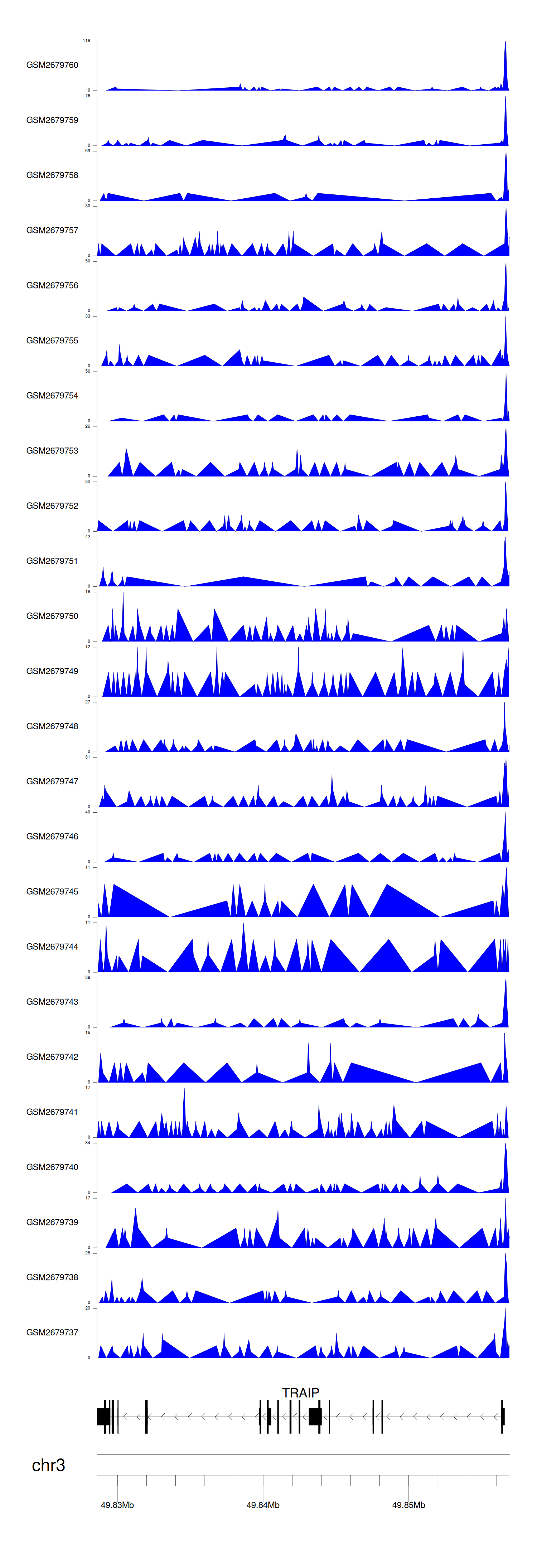 > Dataset: GSE100376 - TRAIP peak across samples