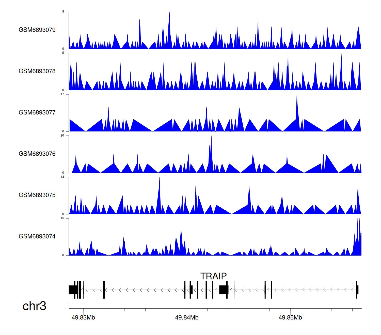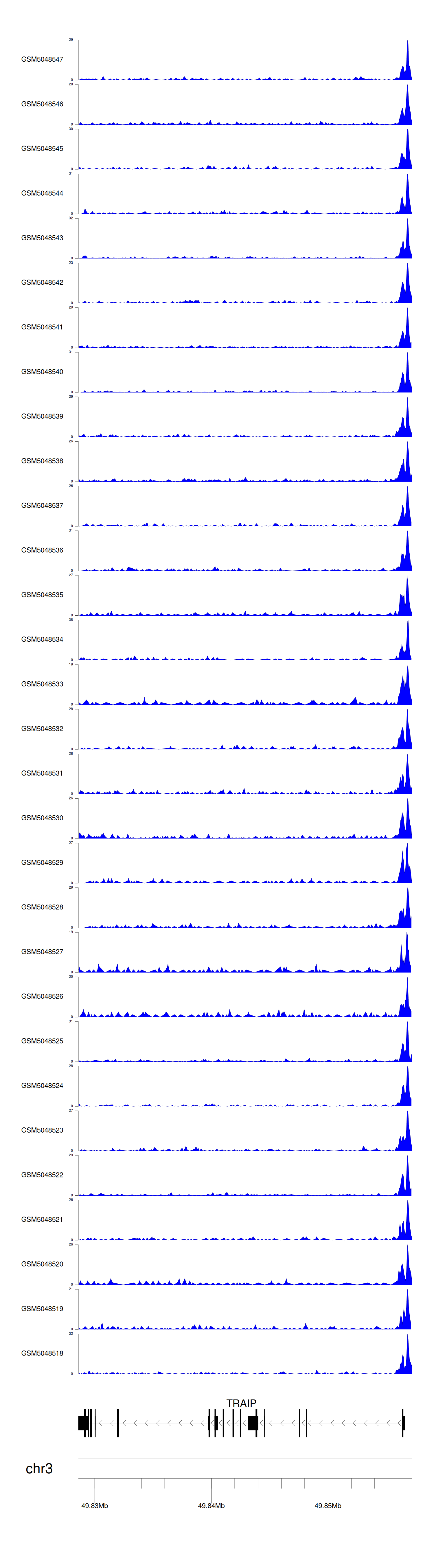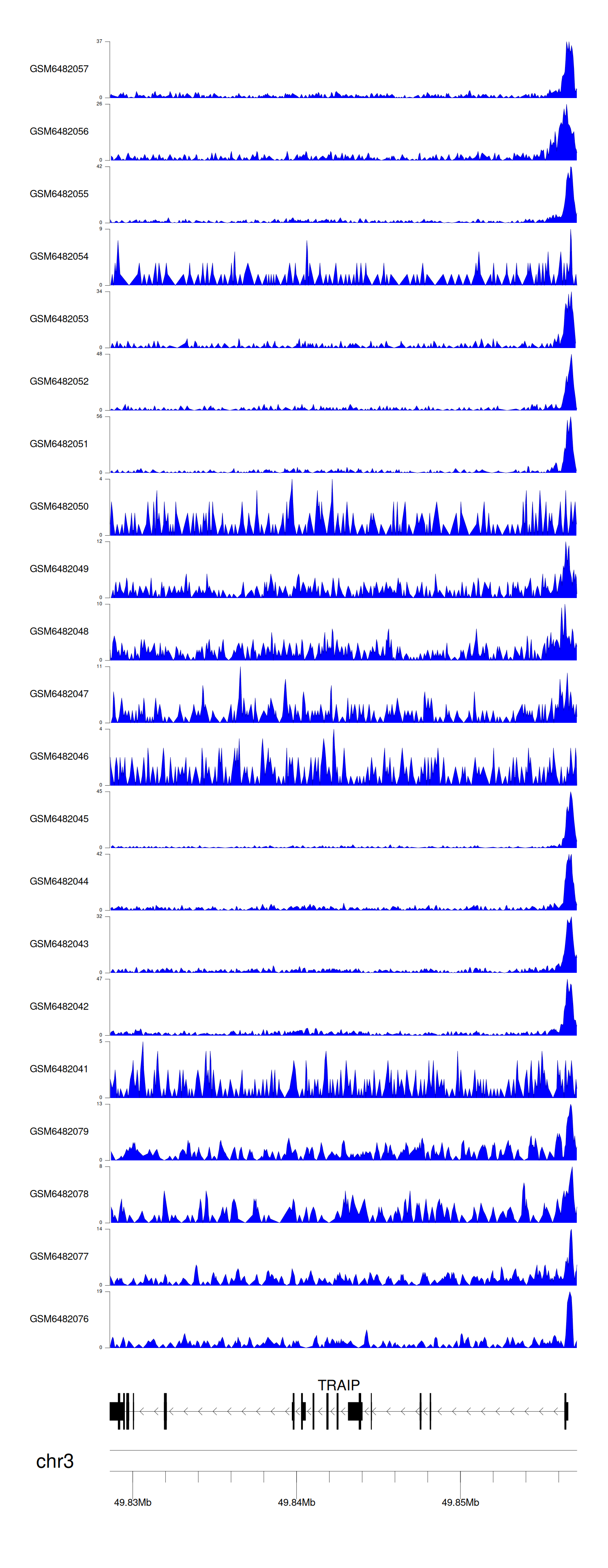 > Dataset: GSE165703 - TRAIP peak across samples