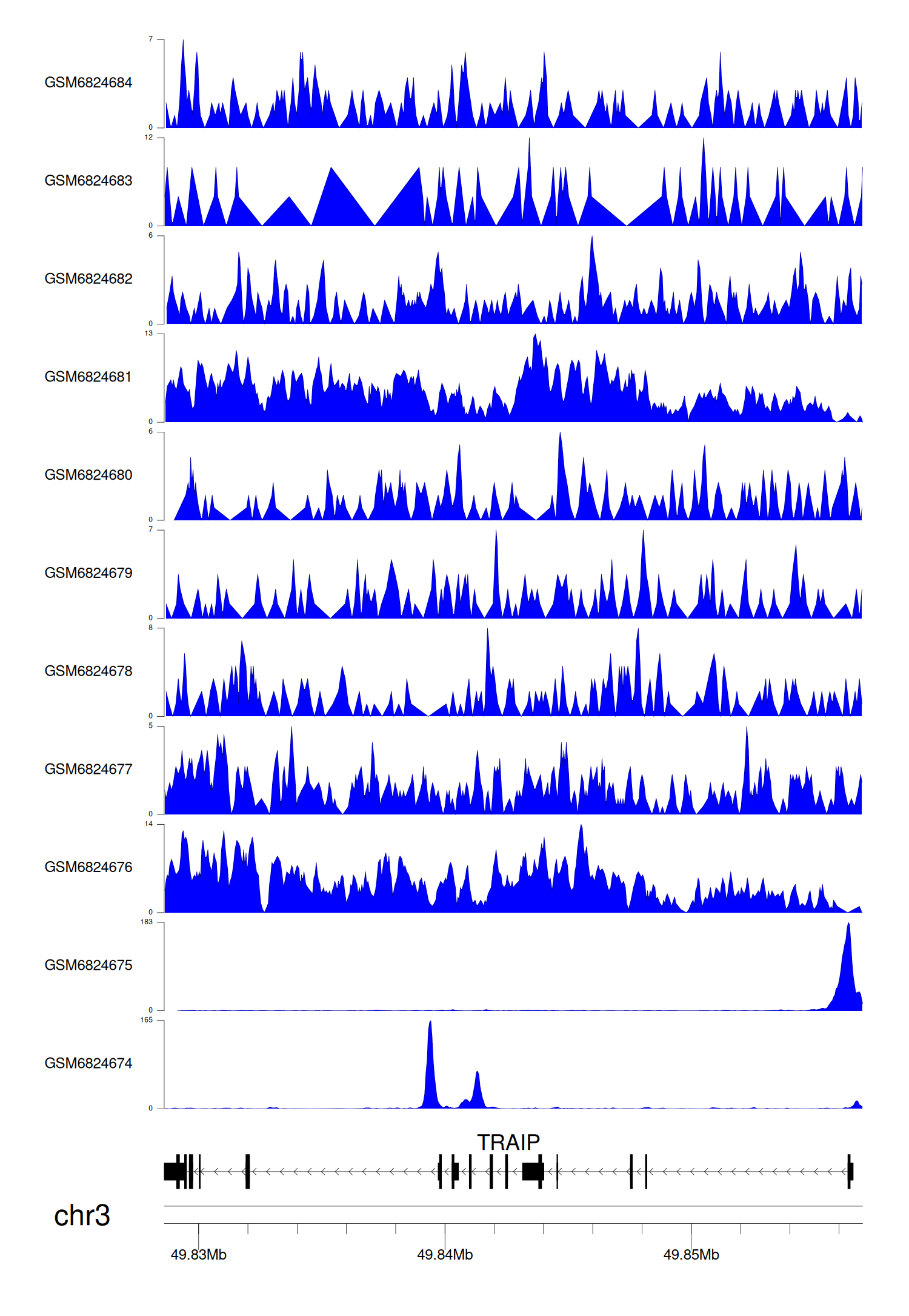 > Dataset: GSE211651 - TRAIP peak across samples