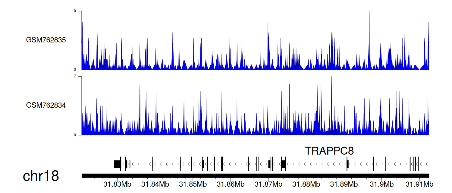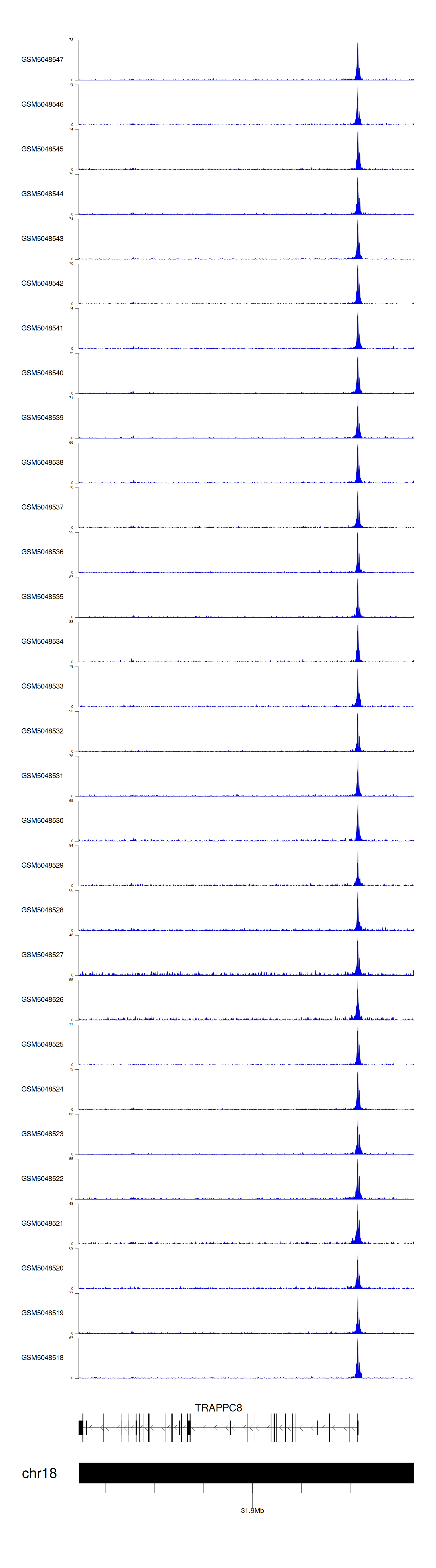 > Dataset: GSE30738 - TRAPPC8 peak across samples