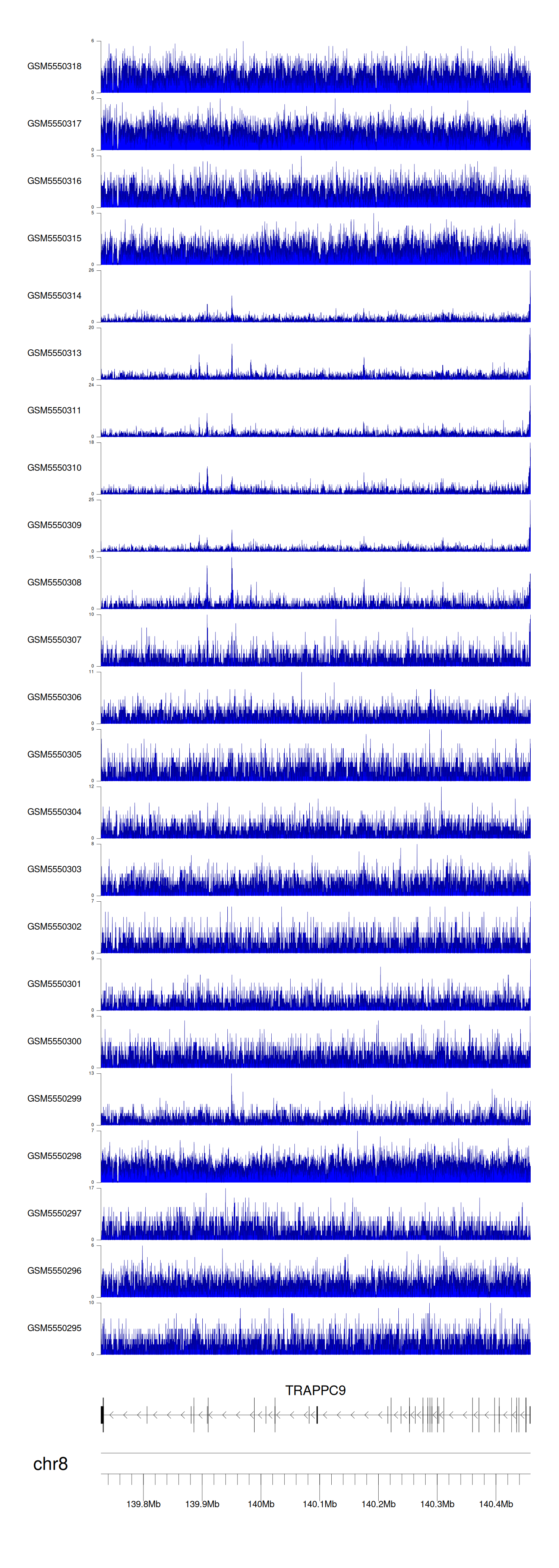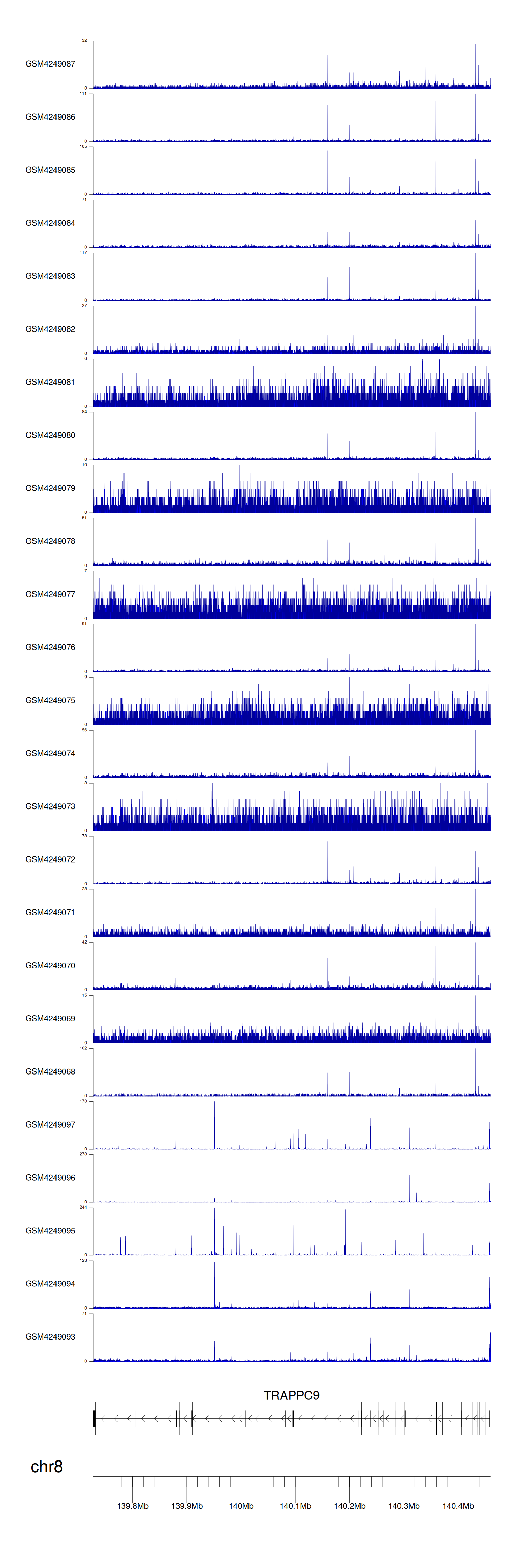 > Dataset: GSE143026 - TRAPPC9 peak across samples