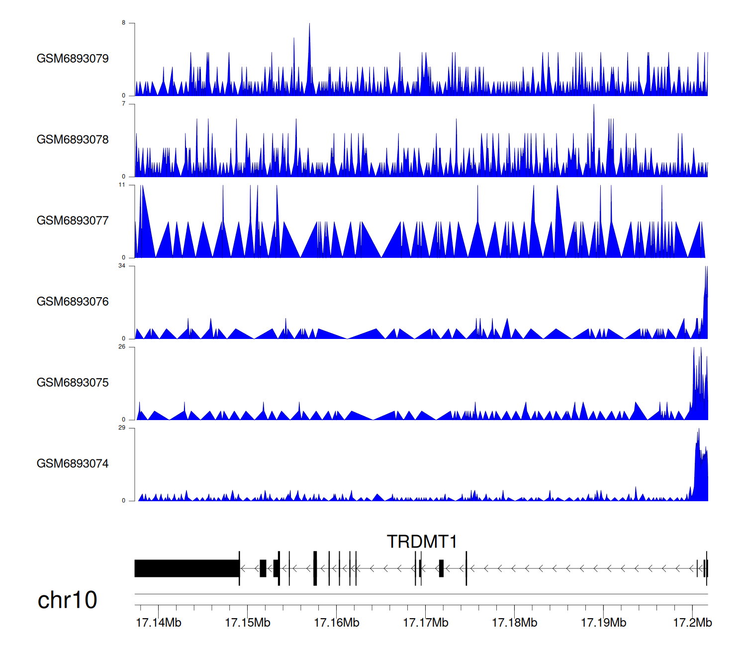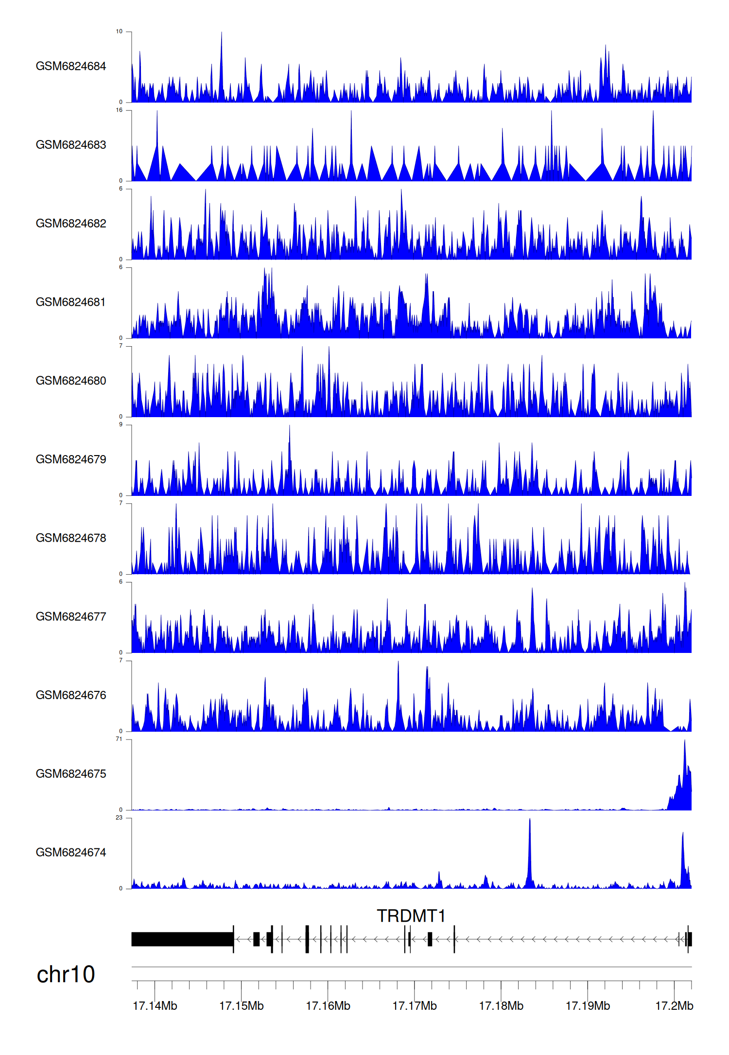 > Dataset: GSE165703 - TRDMT1 peak across samples