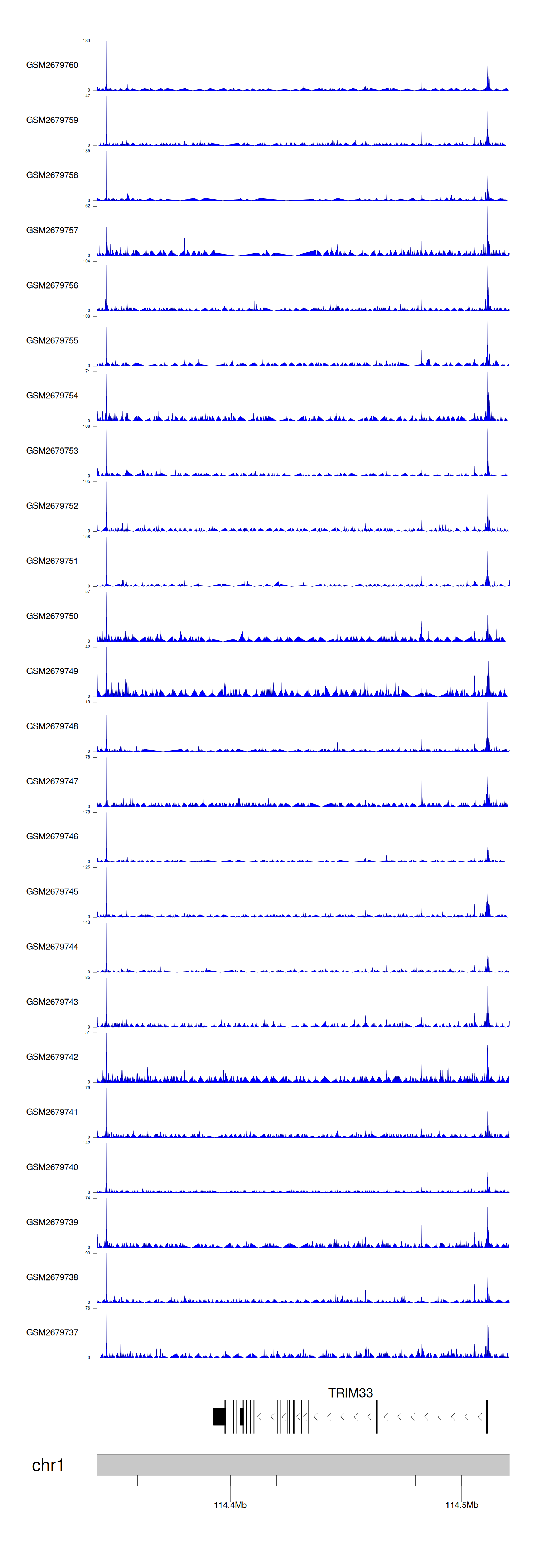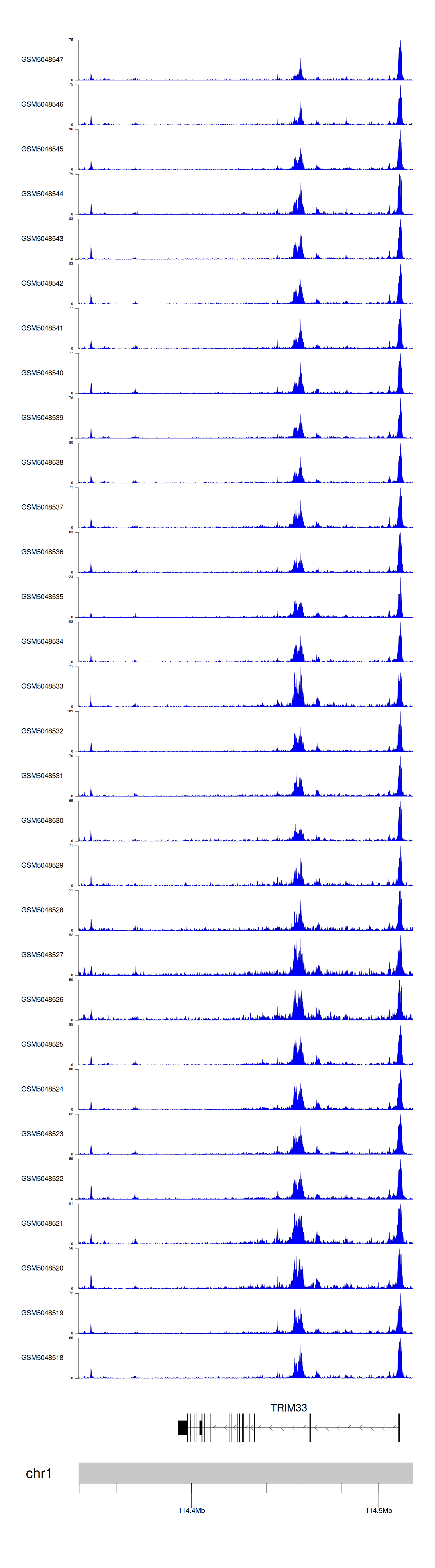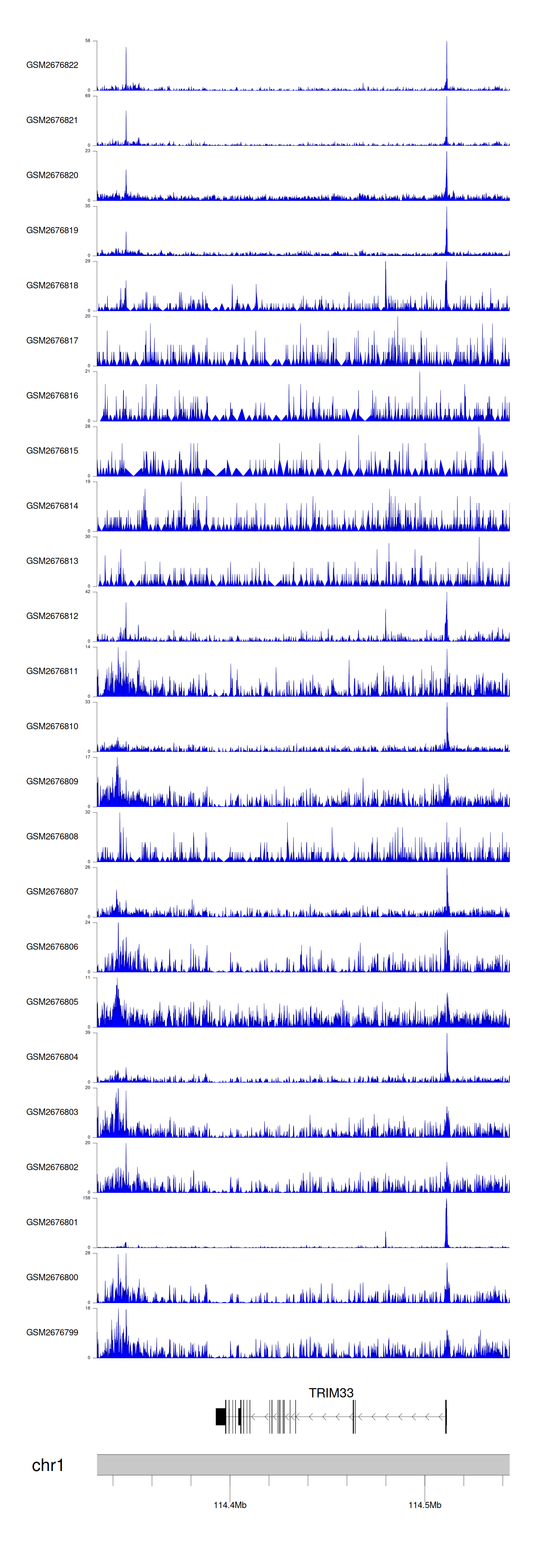 > Dataset: GSE100376 - TRIM33 peak across samples