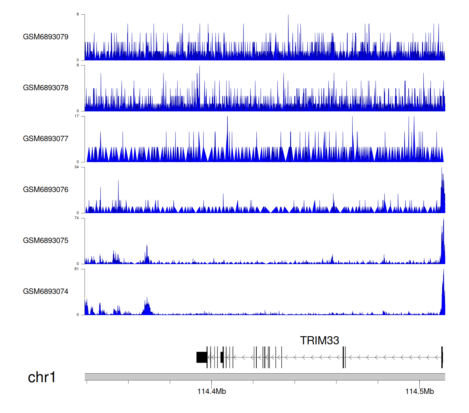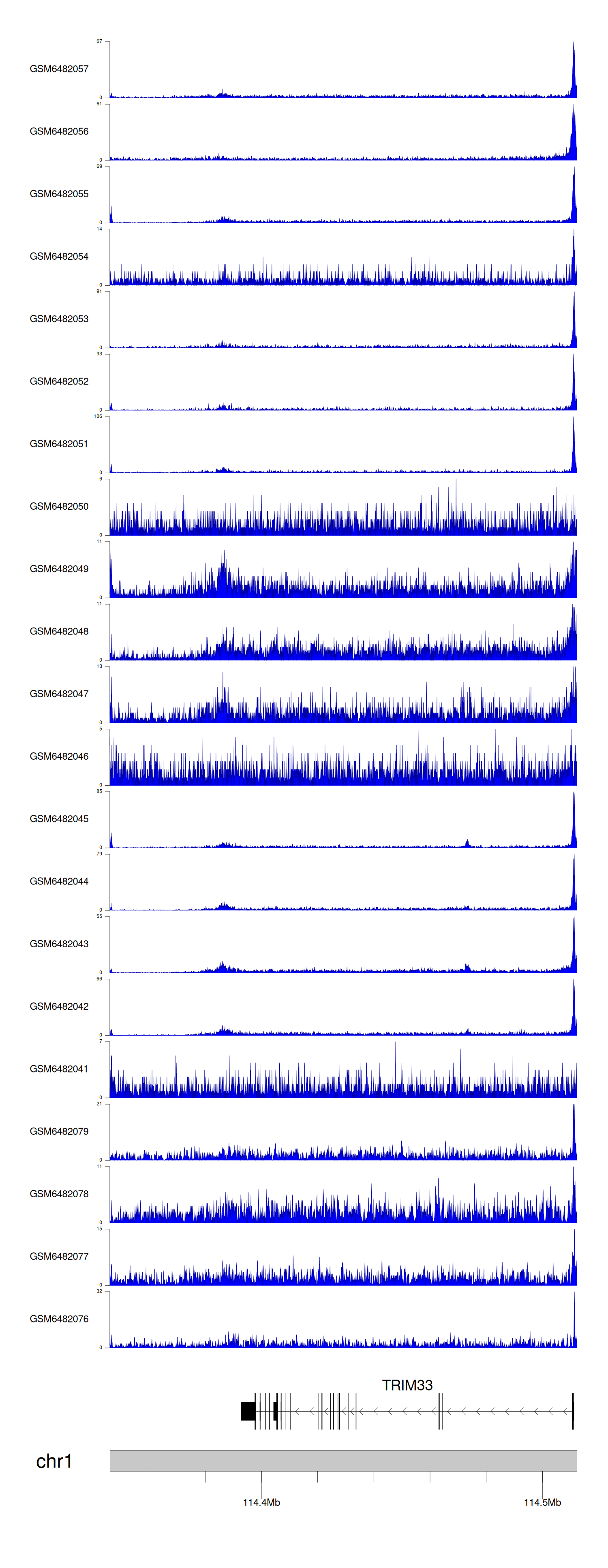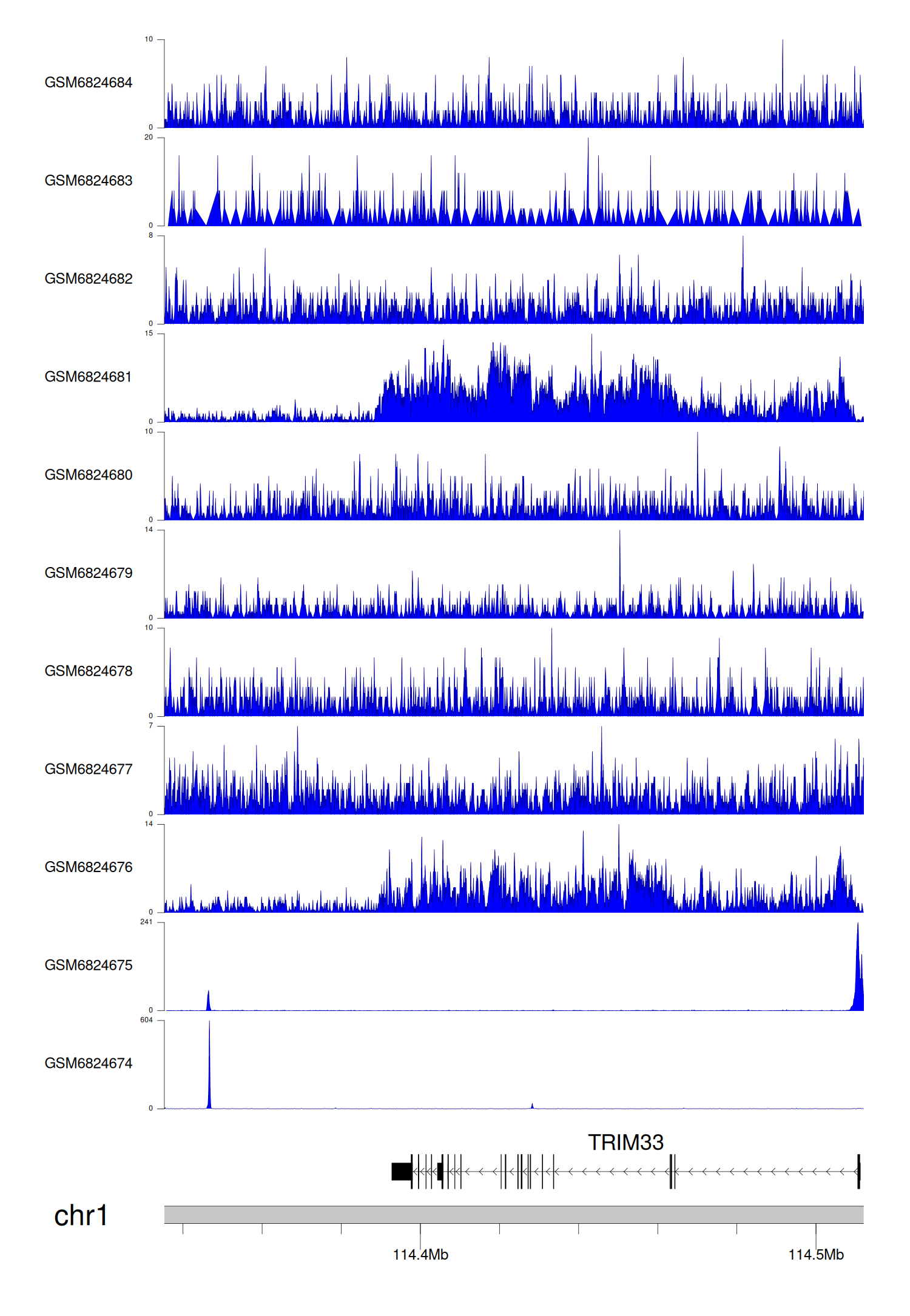 > Dataset: GSE165703 - TRIM33 peak across samples