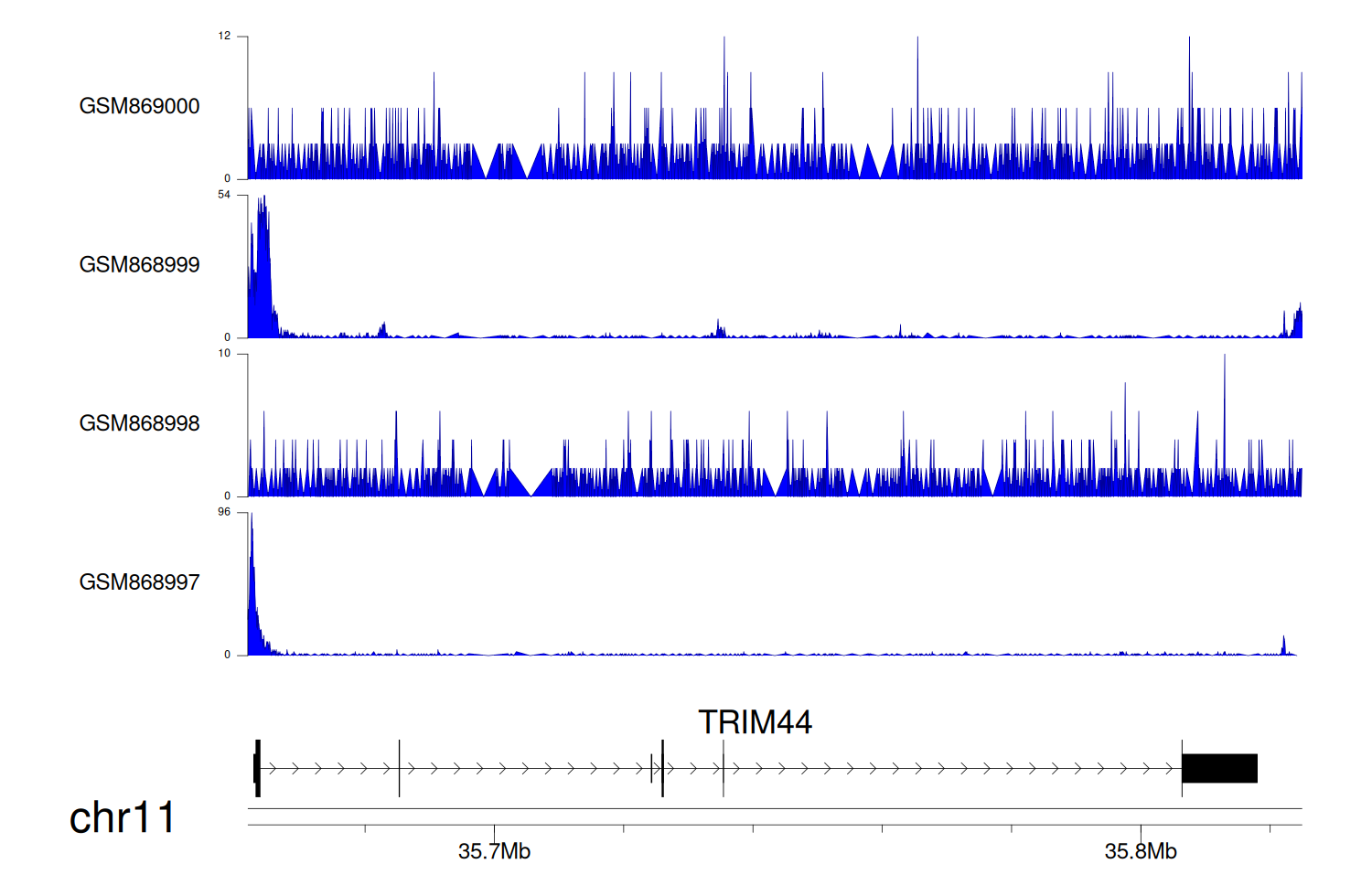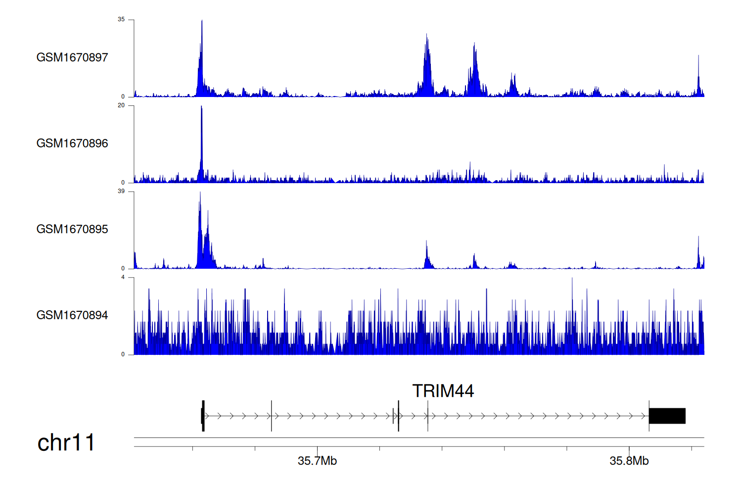 > Dataset: GSE35465 - TRIM44 peak across samples
