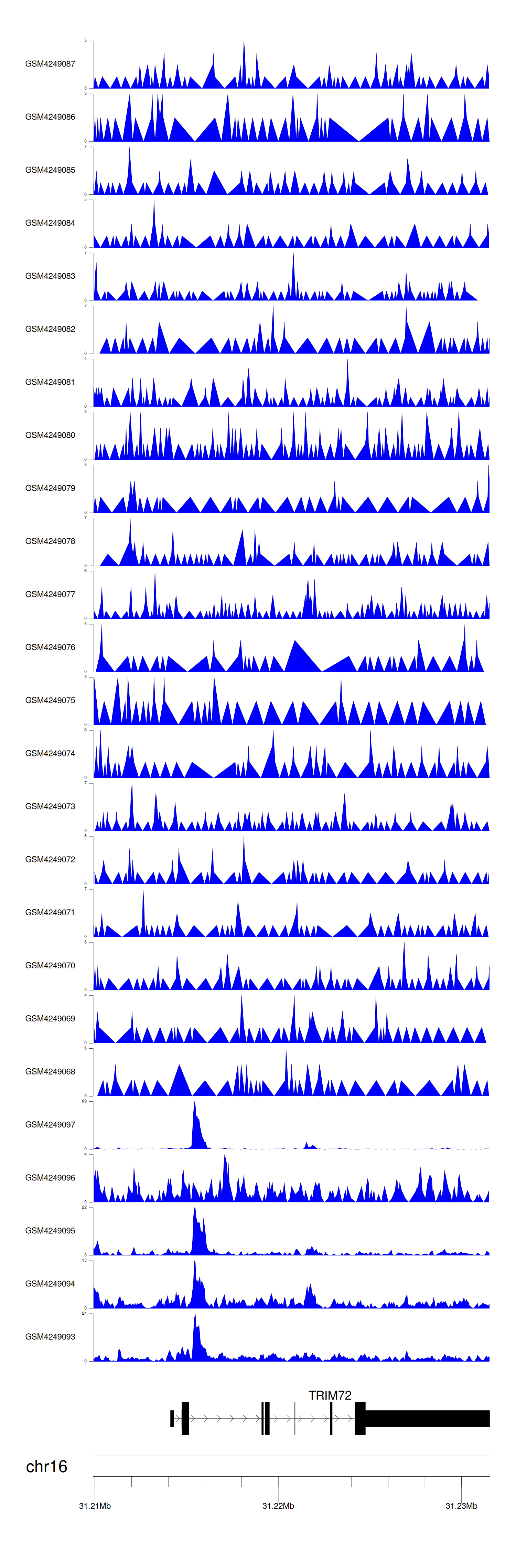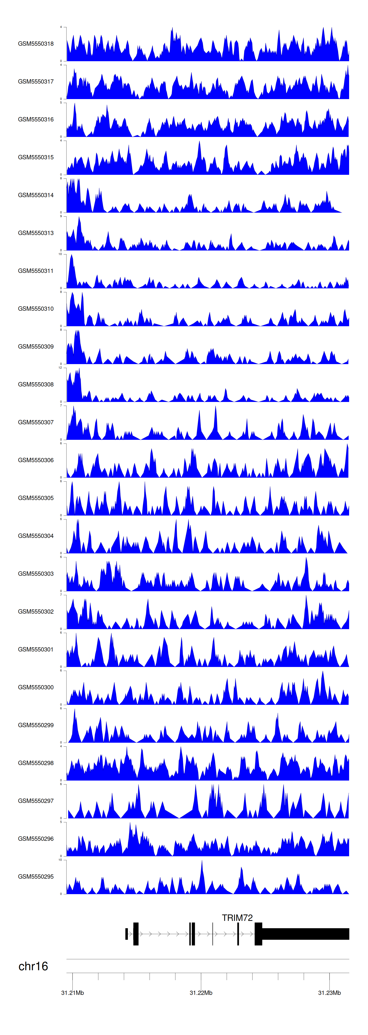 > Dataset: GSE183048 - TRIM72 peak across samples