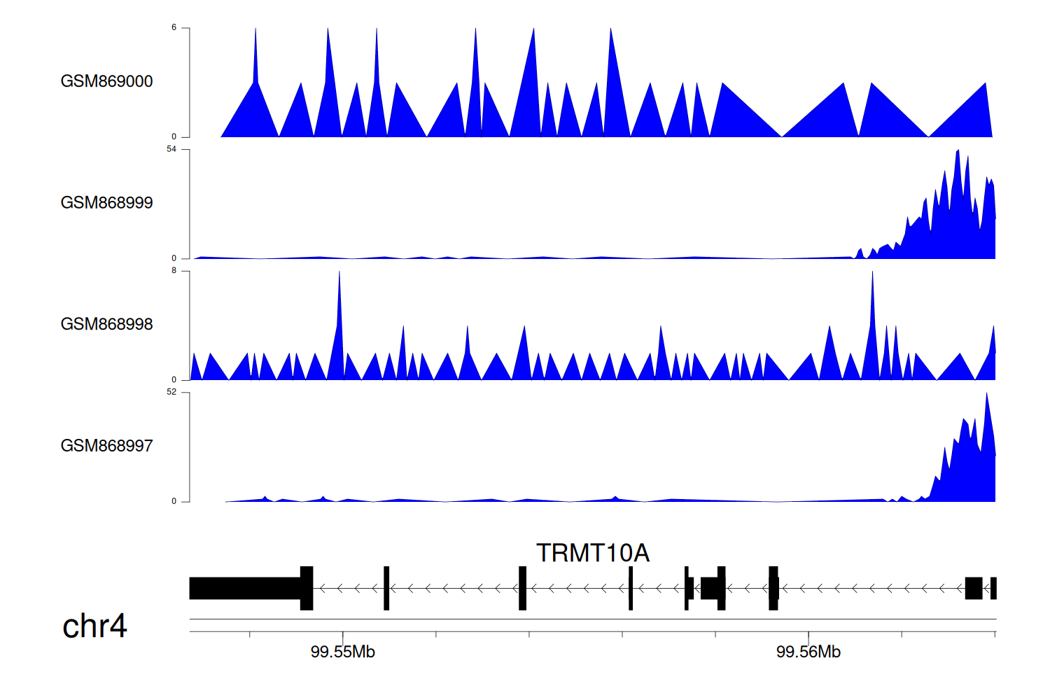 > Dataset: GSE68402 - TRMT10A peak across samples