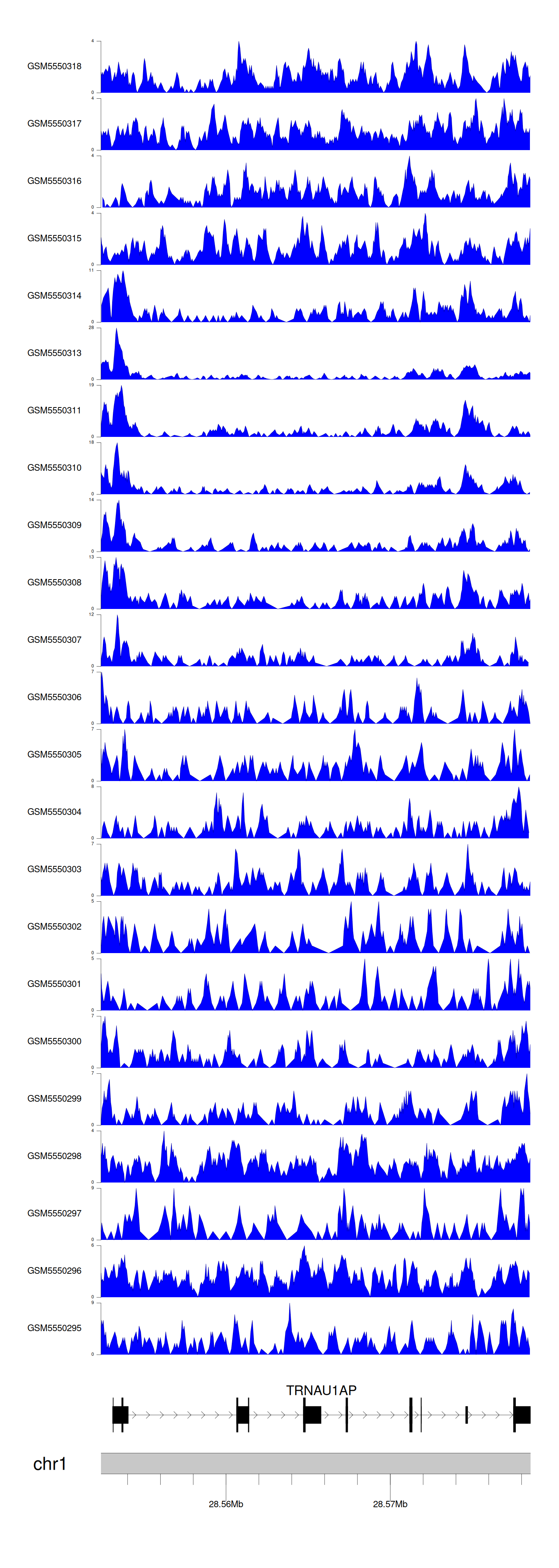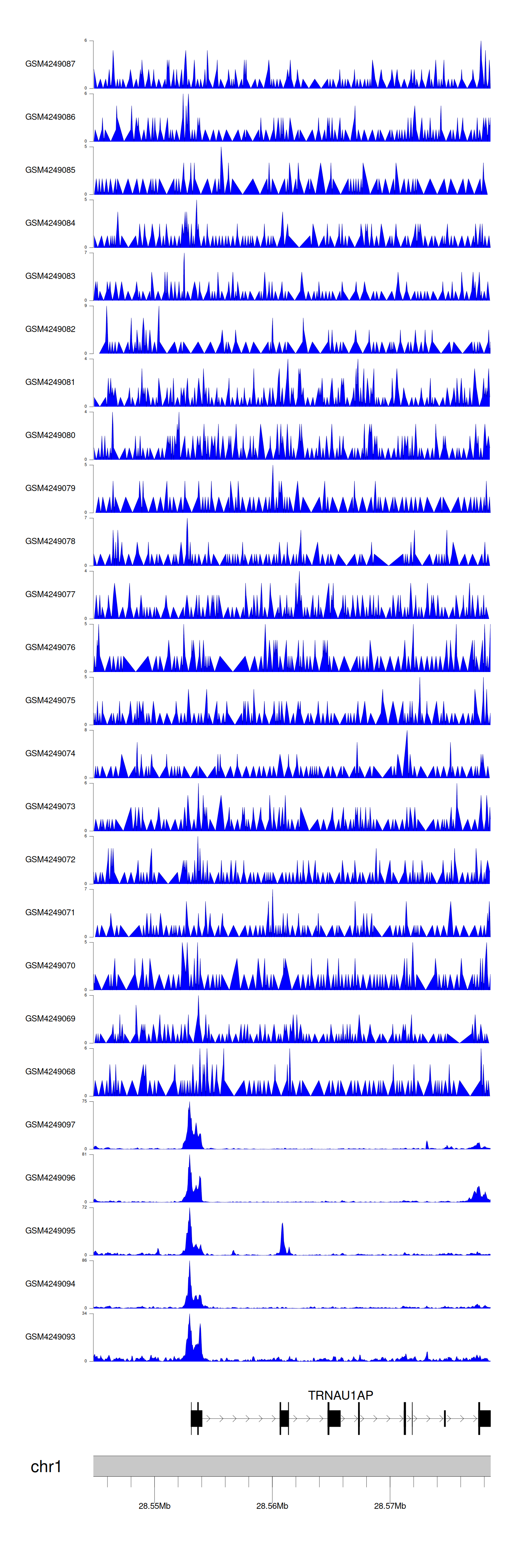 > Dataset: GSE143026 - TRNAU1AP peak across samples