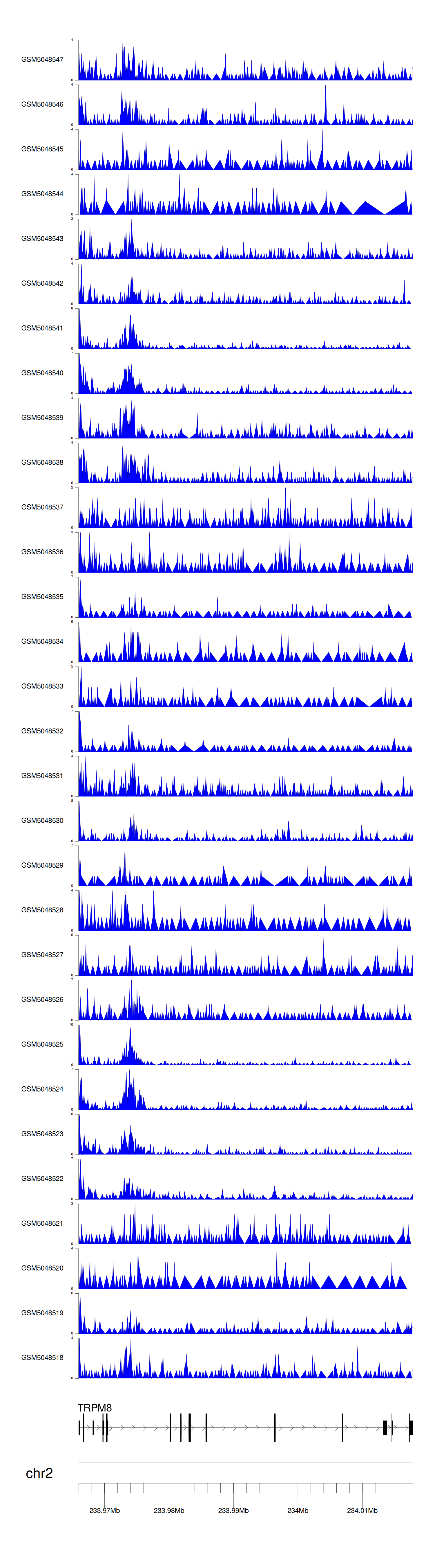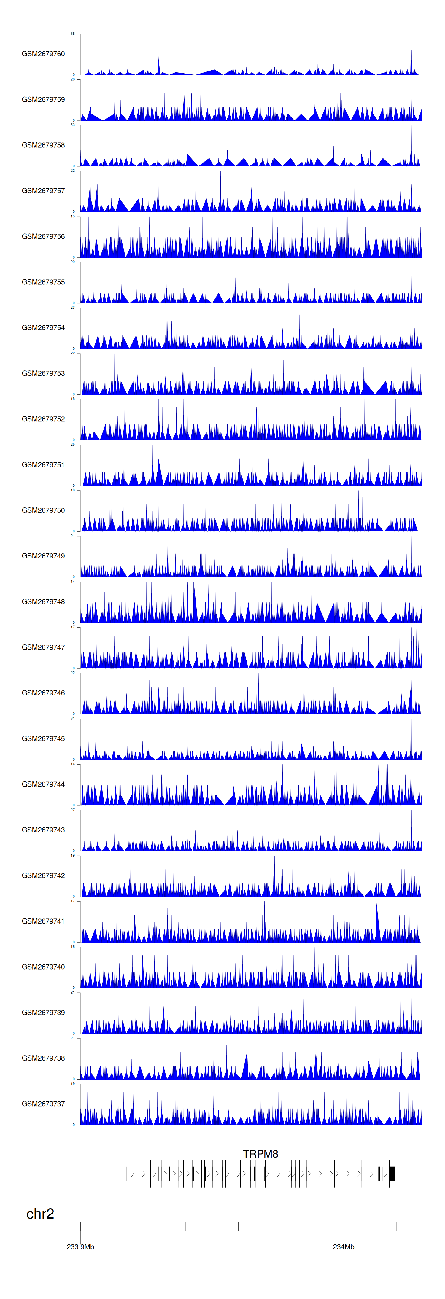 > Dataset: GSE30738 - TRPM8 peak across samples