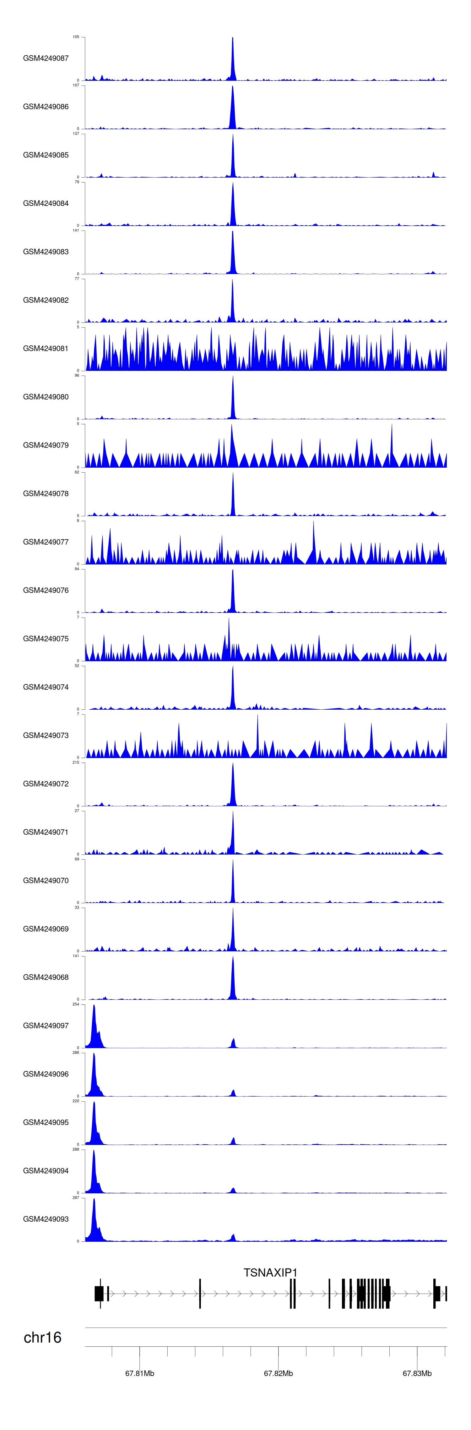 > Dataset: GSE143026 - TSNAXIP1 peak across samples