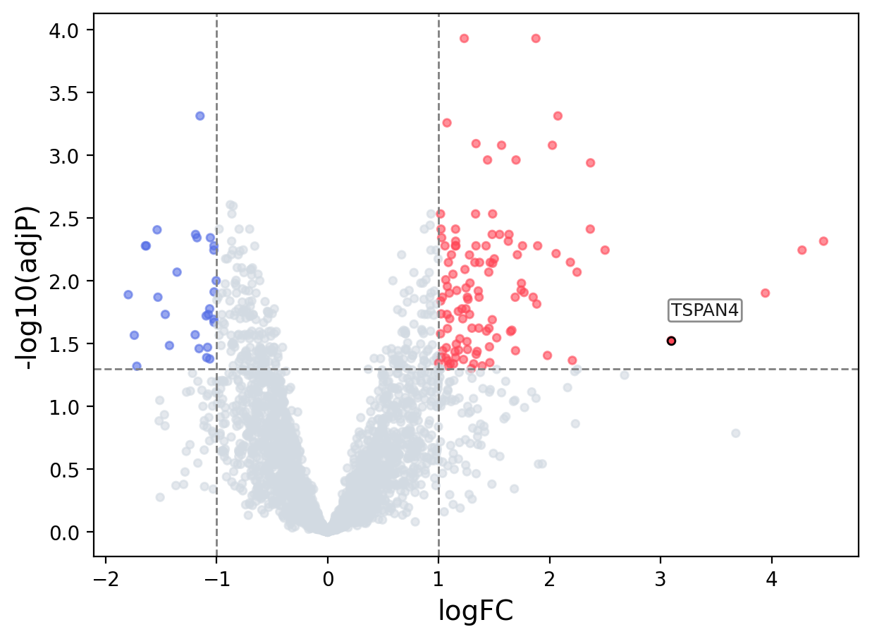 When the query gene is differentially changed in the dataset, a volcano/bar plot will be displayed.