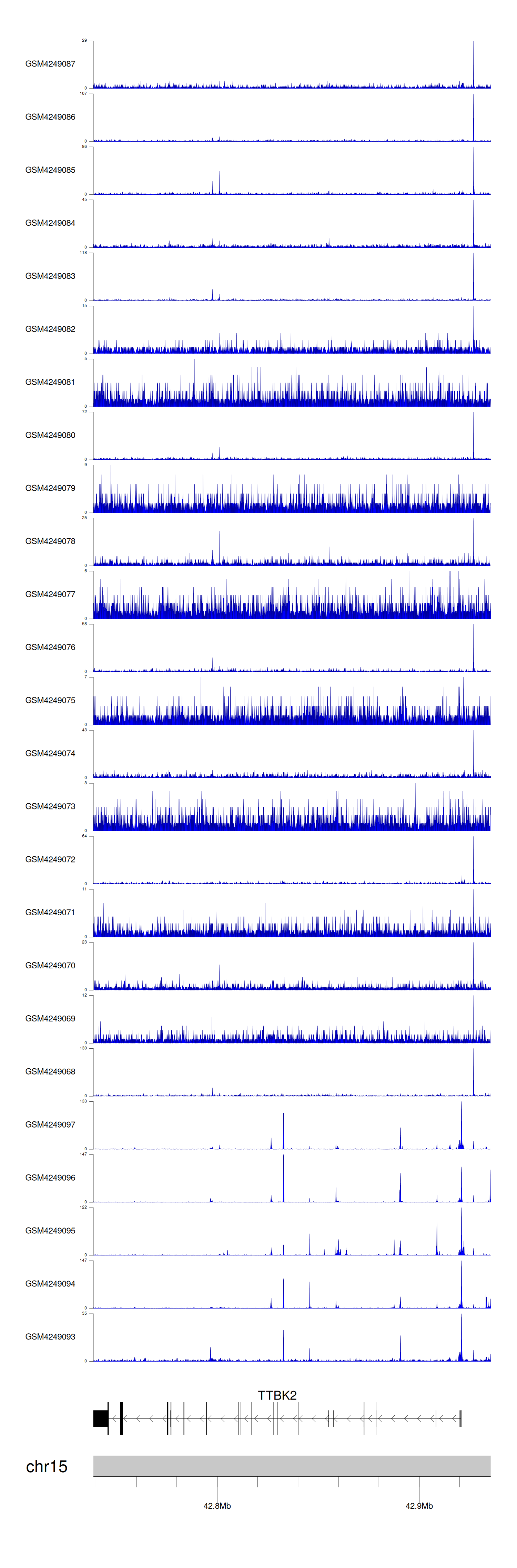 > Dataset: GSE143026 - TTBK2 peak across samples