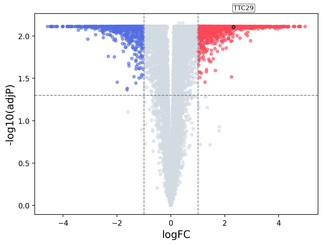 When the query gene is differentially changed in the dataset, a volcano/bar plot will be displayed.