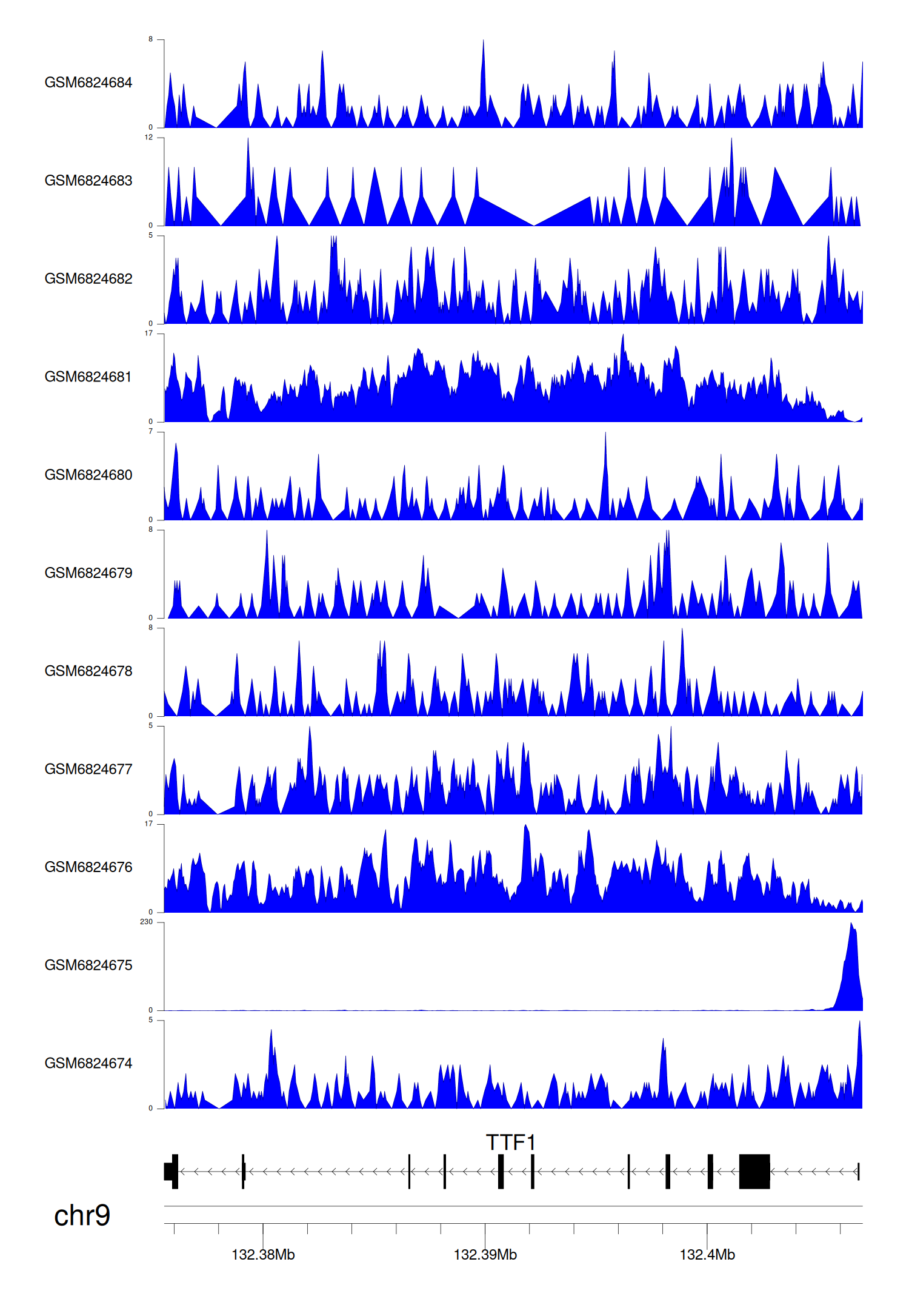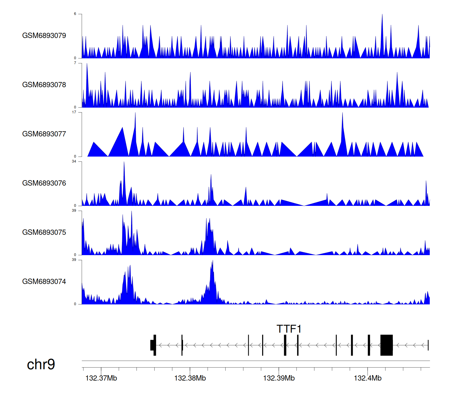 > Dataset: GSE144329 - TTF1 peak across samples
