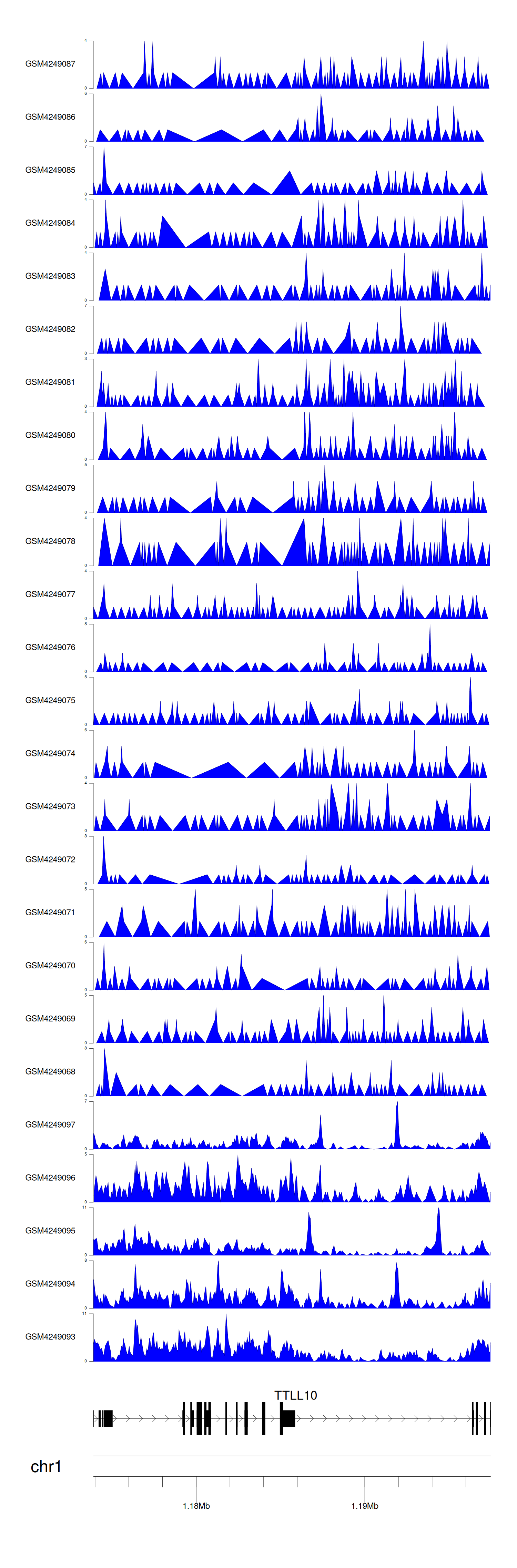 > Dataset: GSE143026 - TTLL10 peak across samples