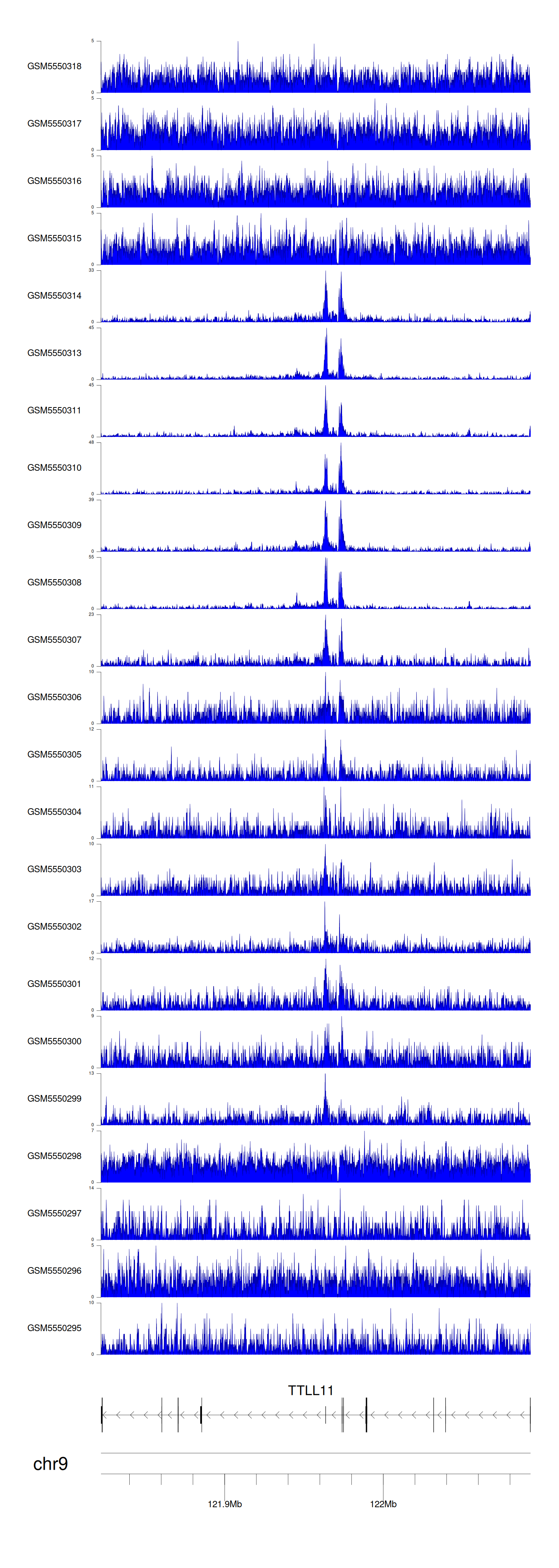 > Dataset: GSE143026 - TTLL11 peak across samples