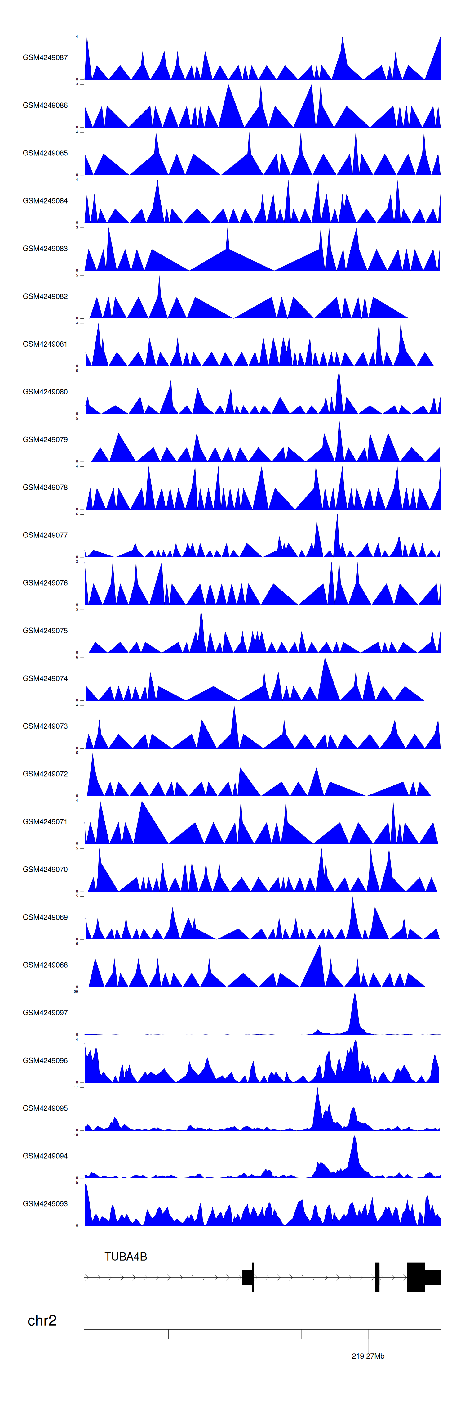 > Dataset: GSE143026 - TUBA4B peak across samples