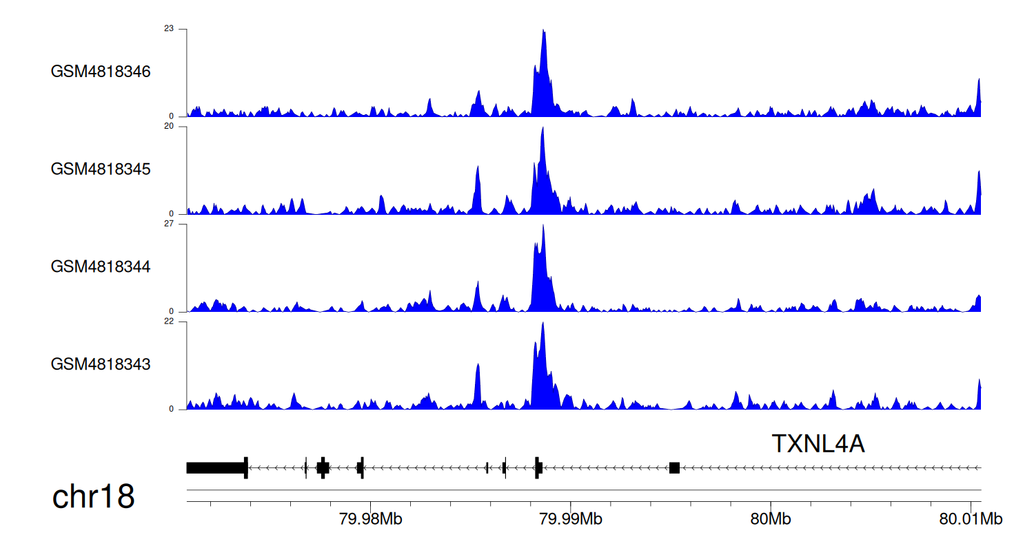 > Dataset: GSE131257 - TXNL4A peak across samples