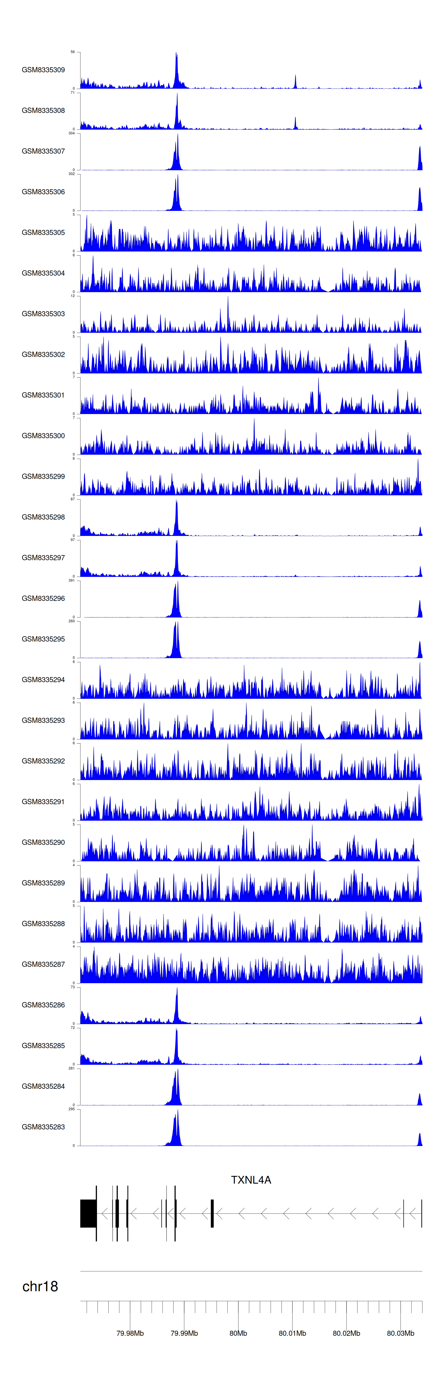 > Dataset: GSE270130 - TXNL4A peak across samples