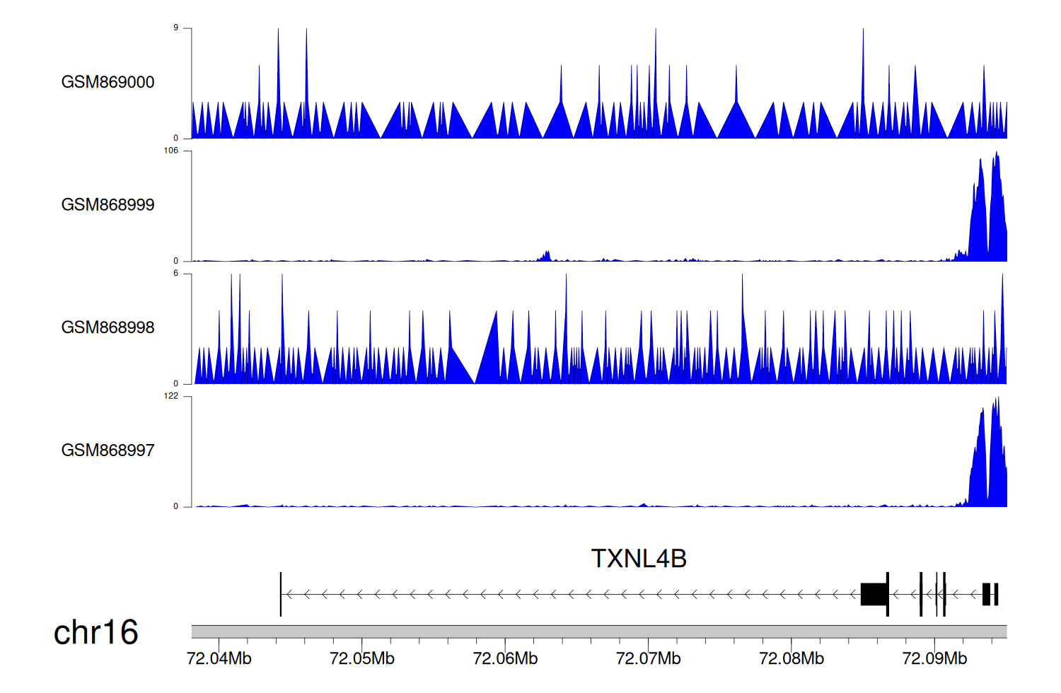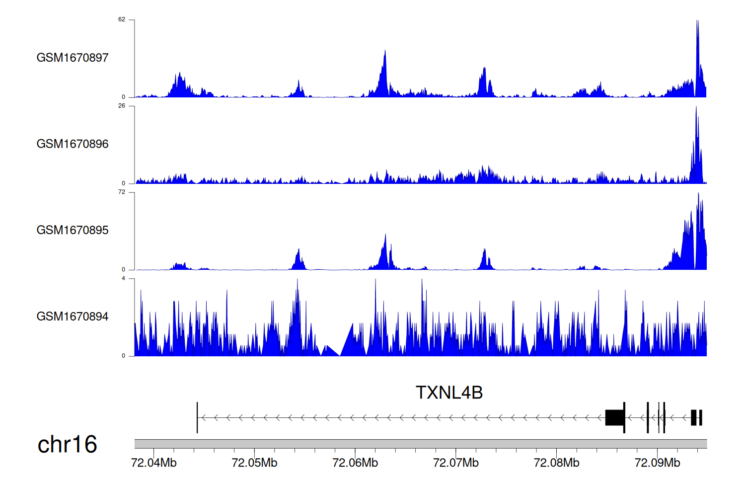 > Dataset: GSE68402 - TXNL4B peak across samples