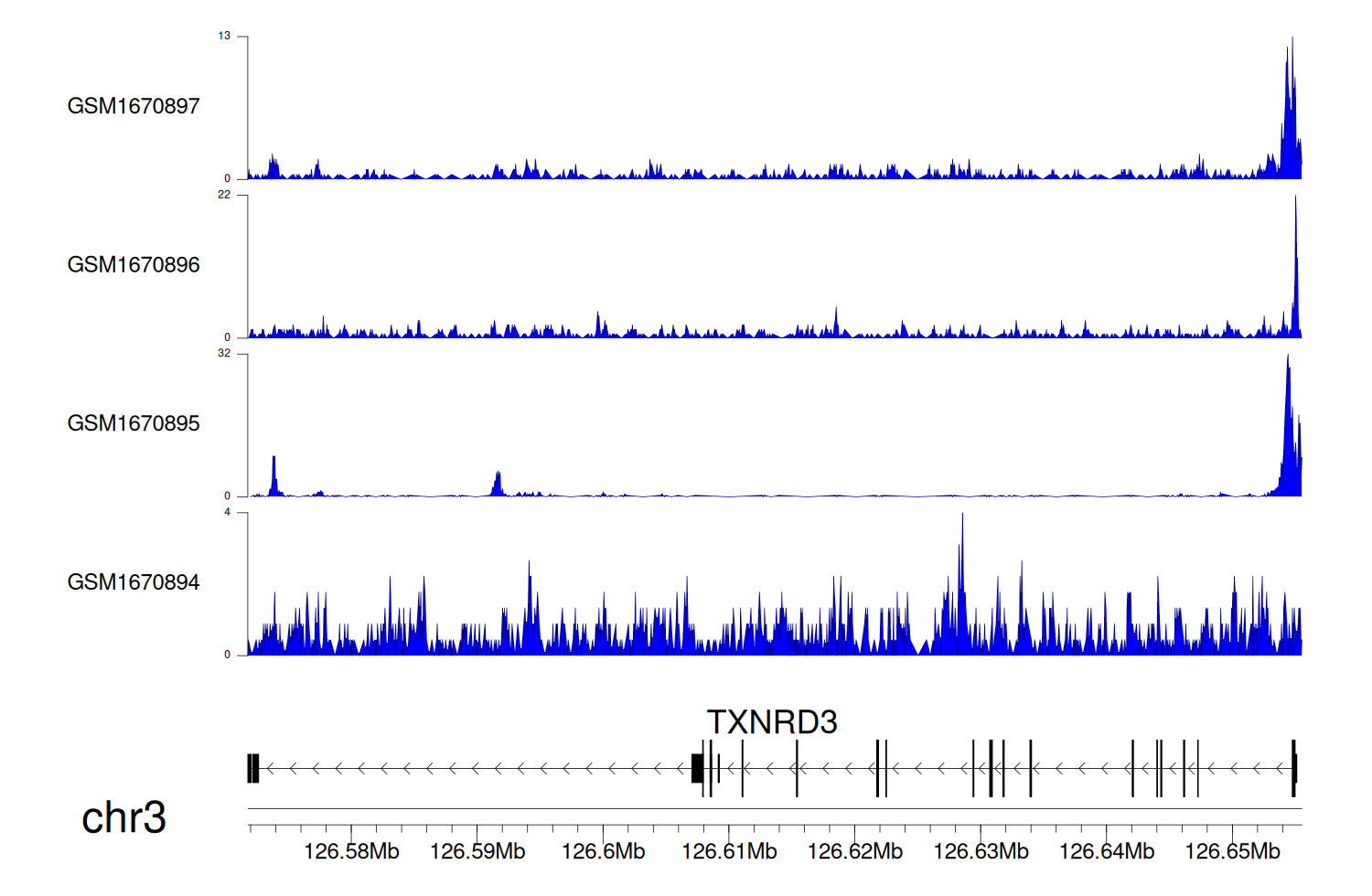 > Dataset: GSE68402 - TXNRD3 peak across samples