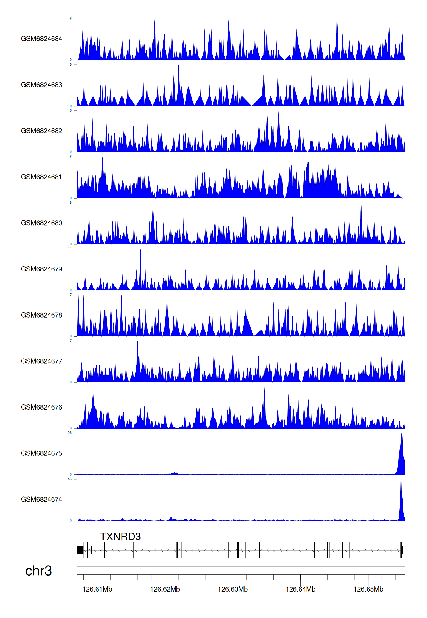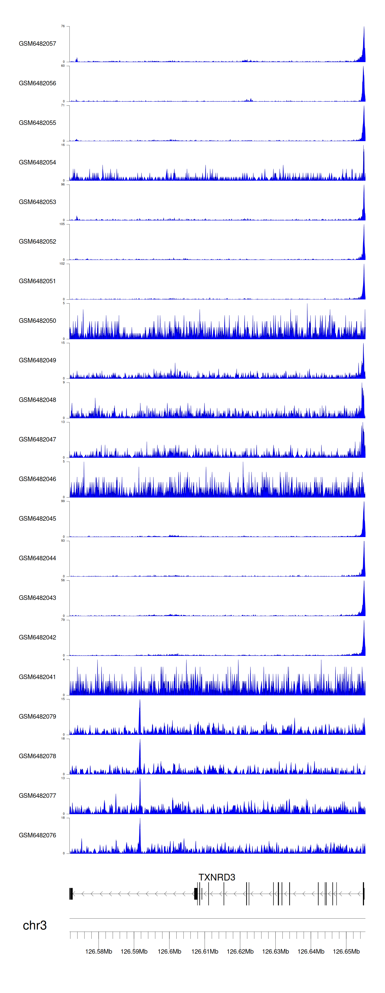 > Dataset: GSE144329 - TXNRD3 peak across samples