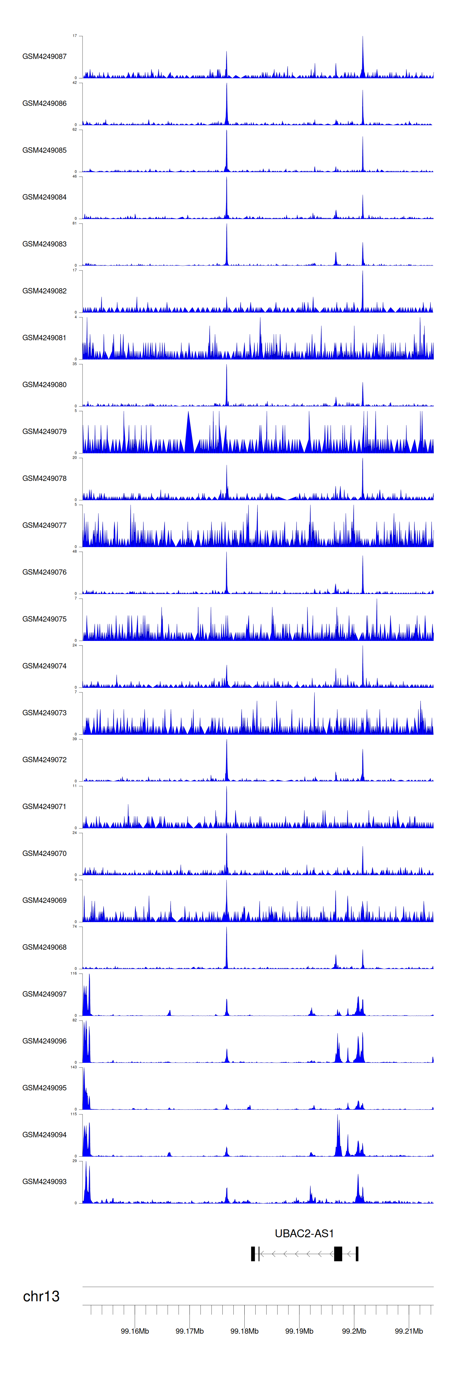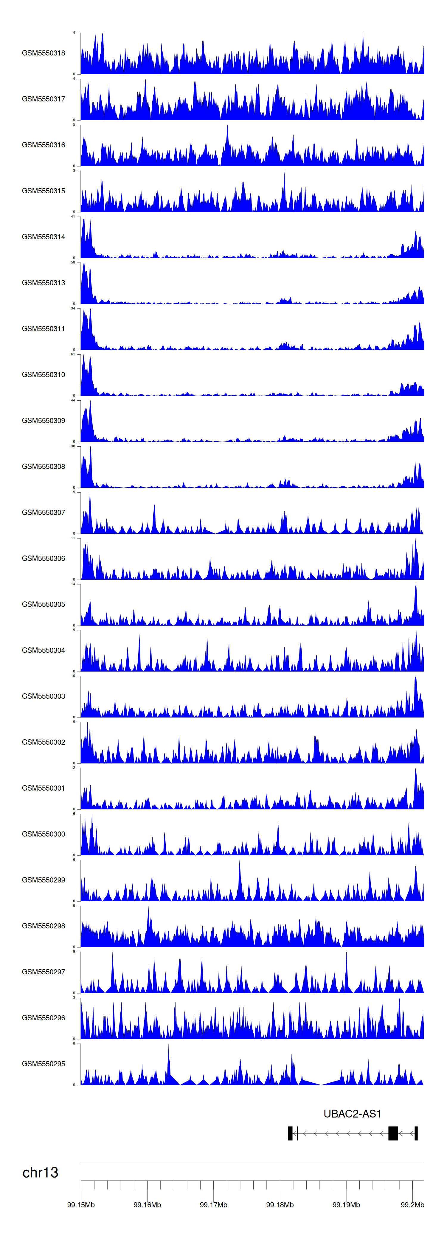 > Dataset: GSE143026 - UBAC2-AS1 peak across samples
