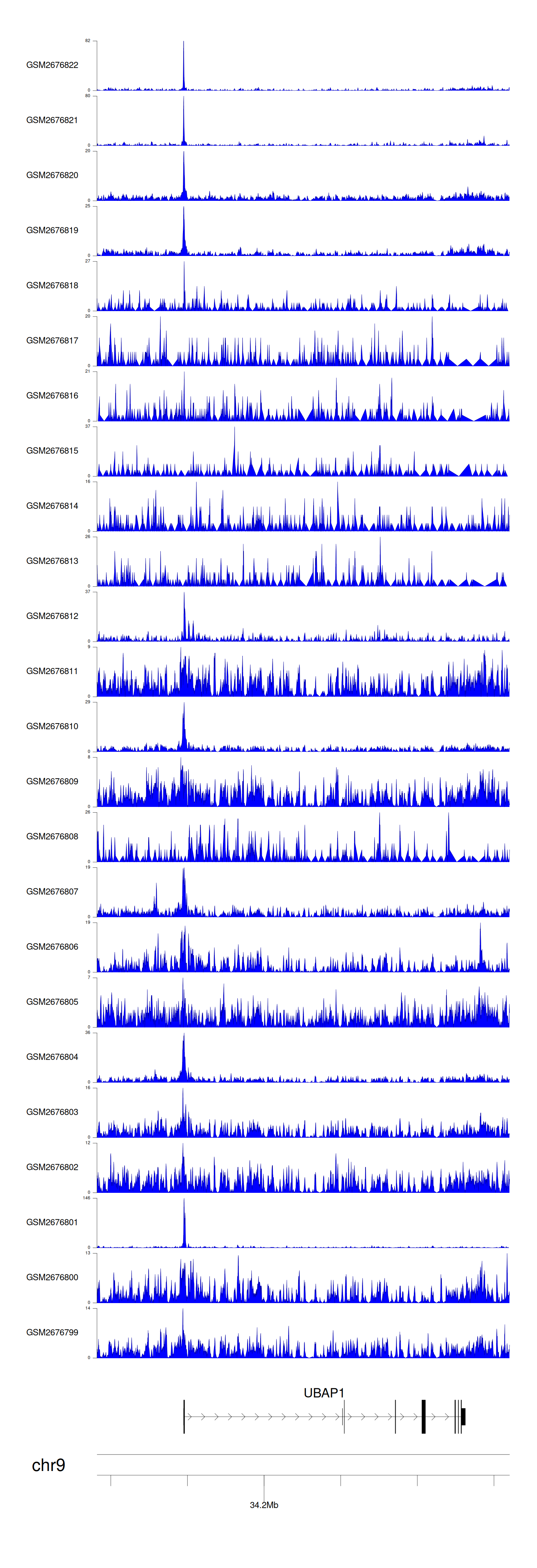 > Dataset: GSE100376 - UBAP1 peak across samples
