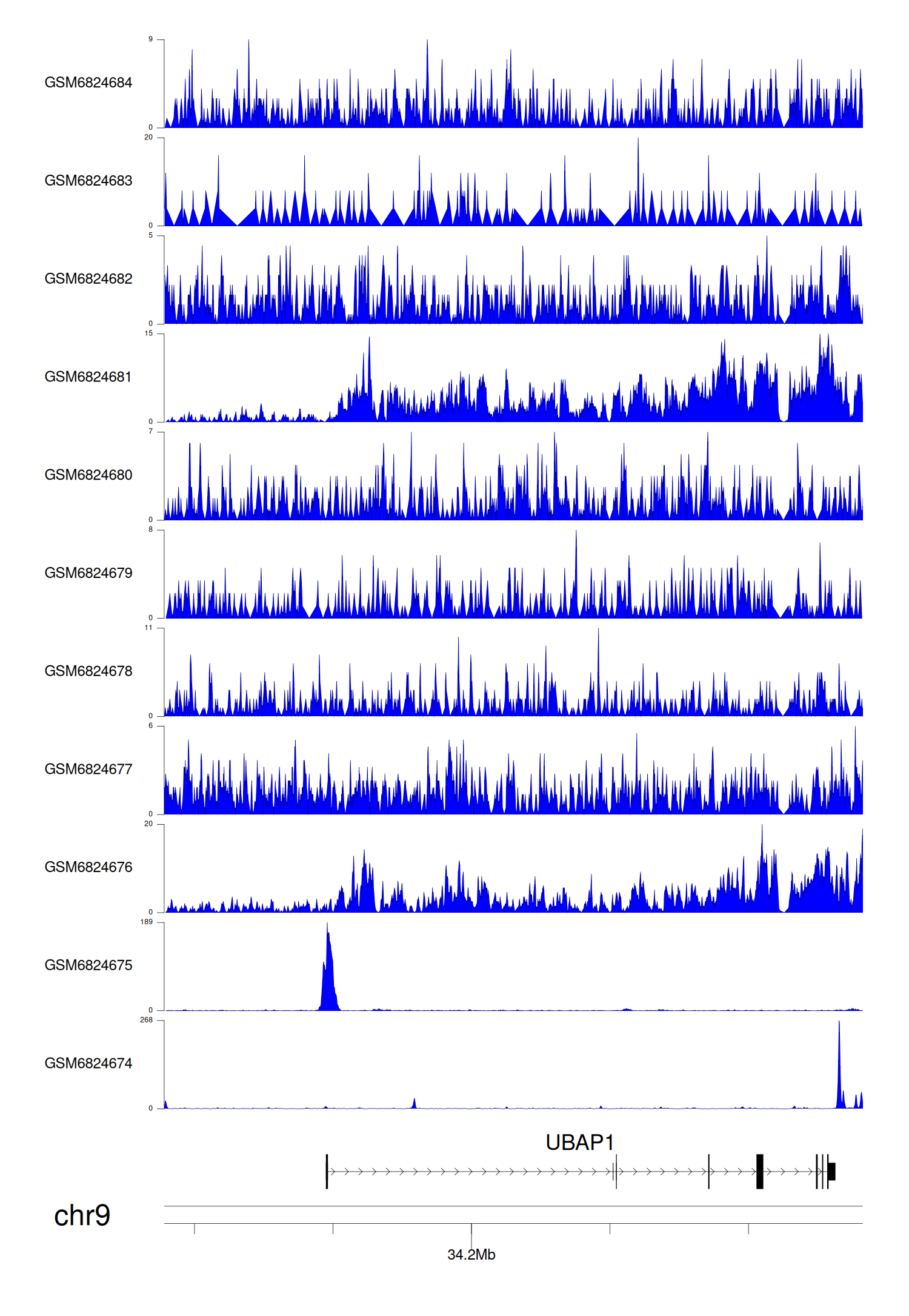 > Dataset: GSE165703 - UBAP1 peak across samples
