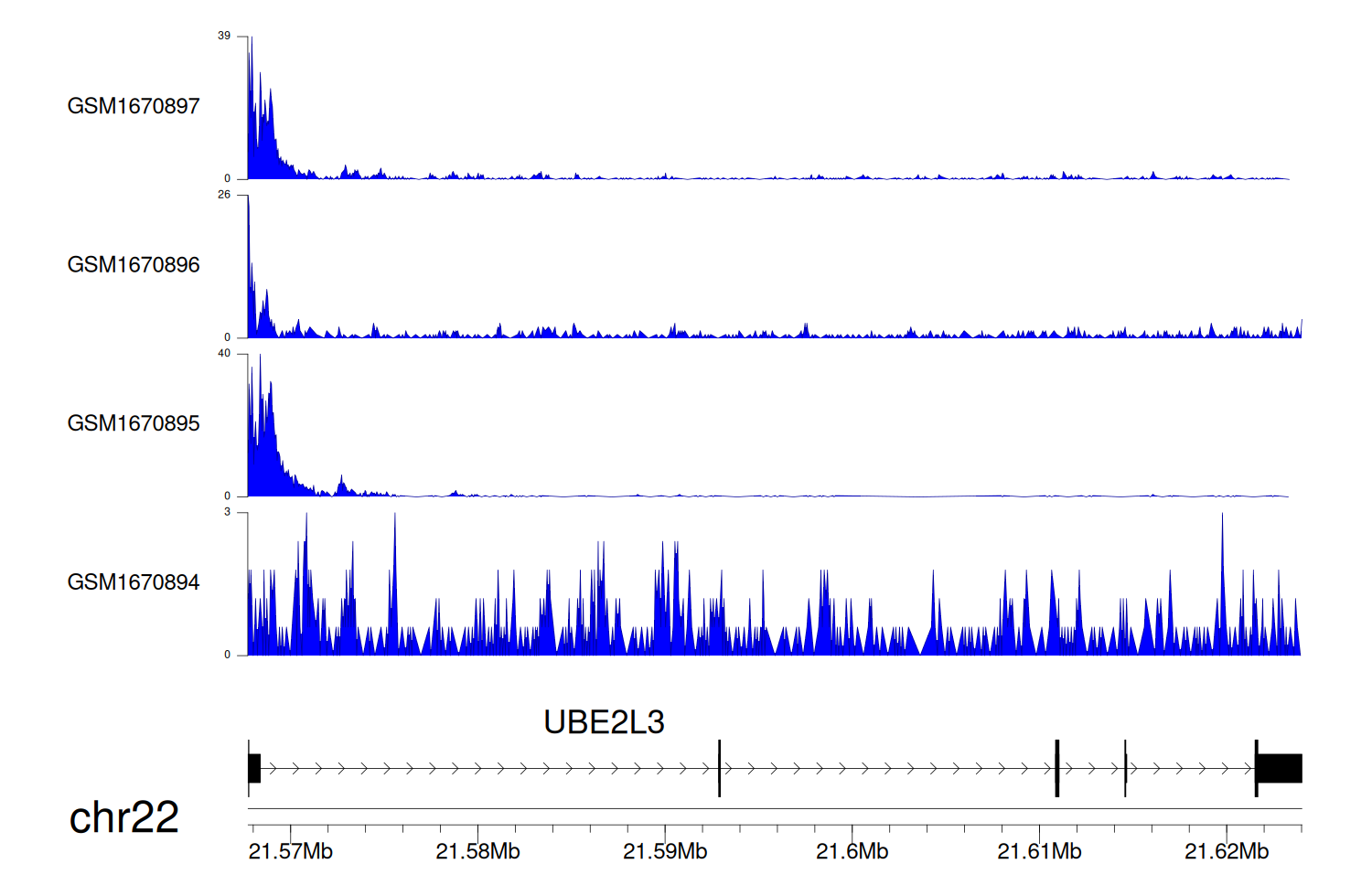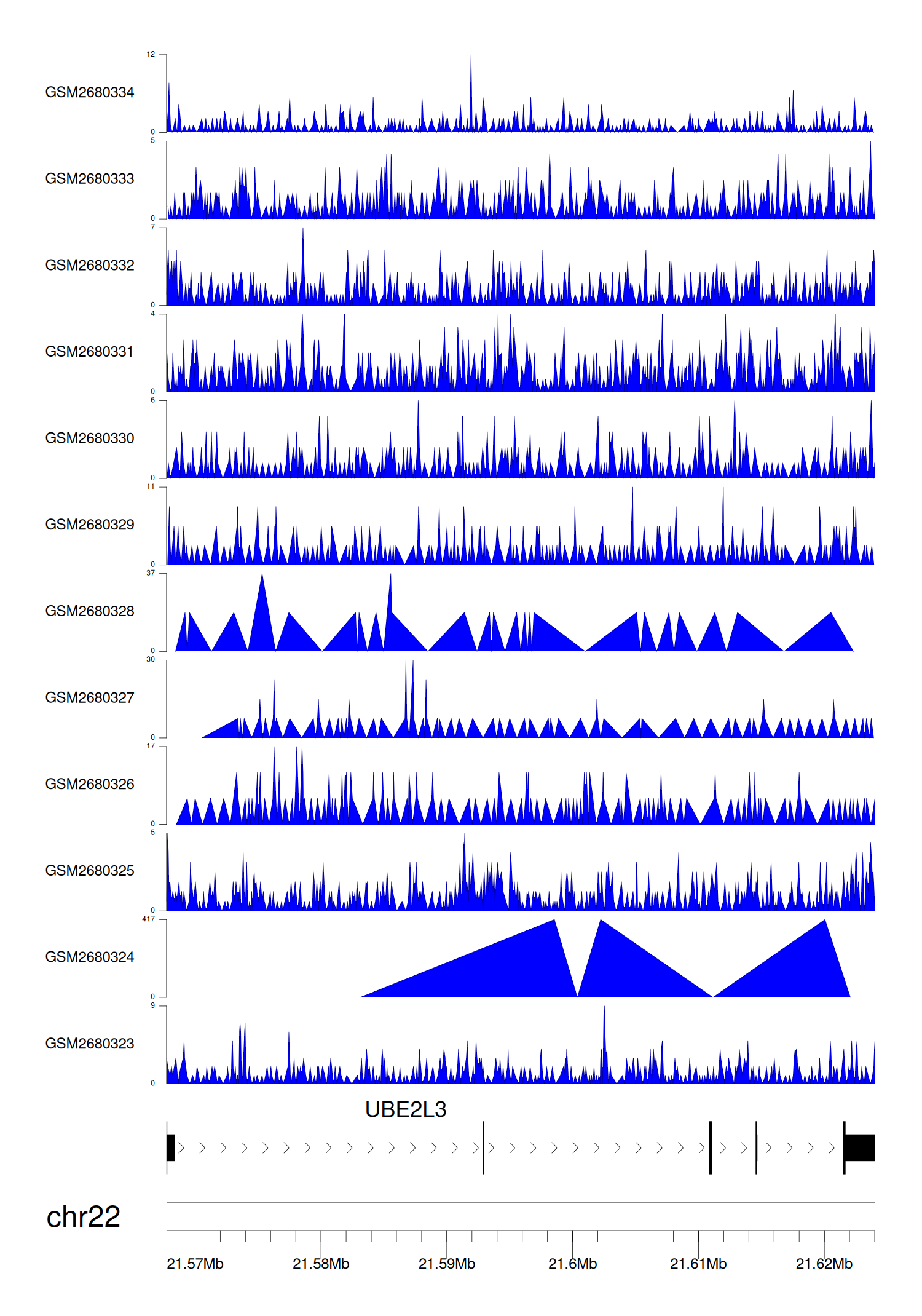 > Dataset: GSE100400 - UBE2L3 peak across samples