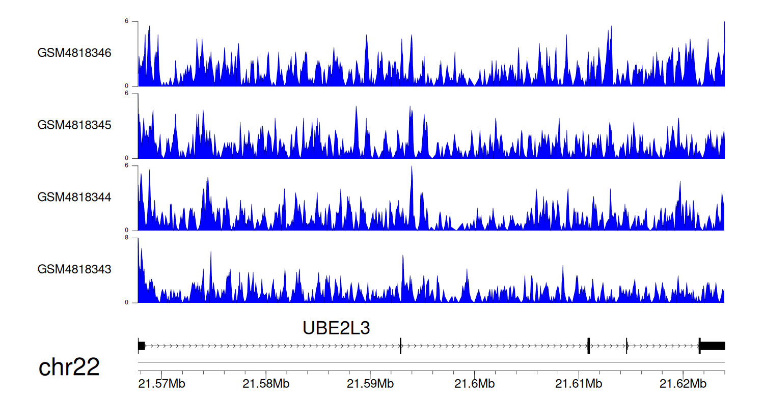 > Dataset: GSE131257 - UBE2L3 peak across samples