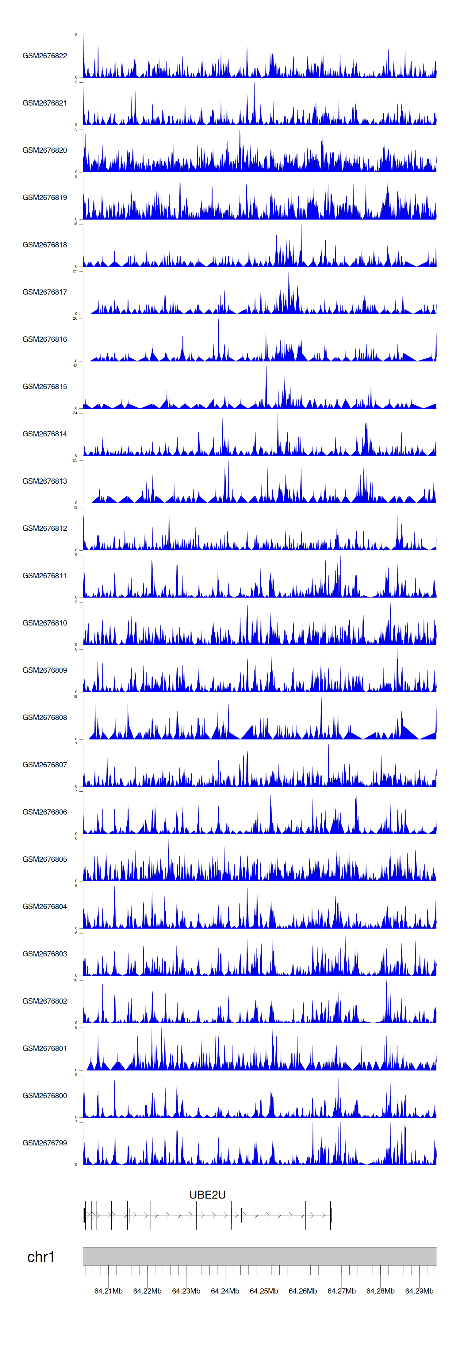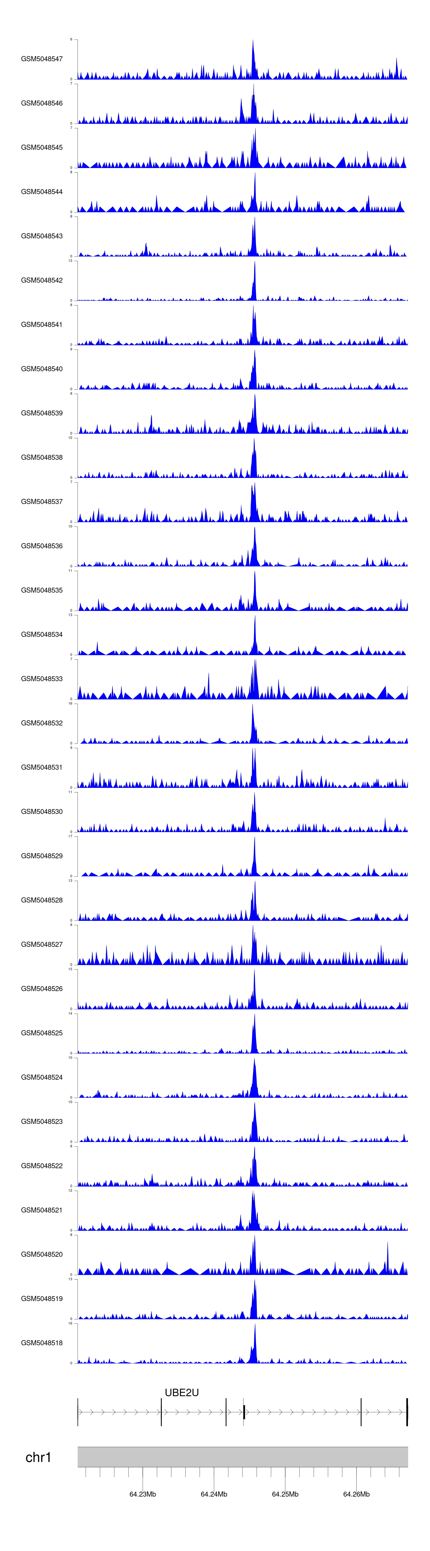 > Dataset: GSE165703 - UBE2U peak across samples