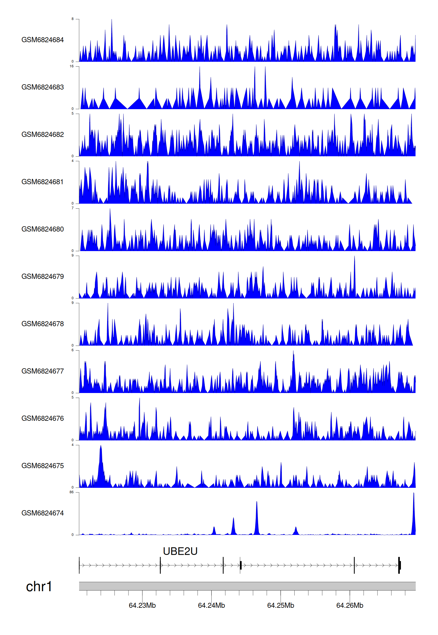 > Dataset: GSE220859 - UBE2U peak across samples