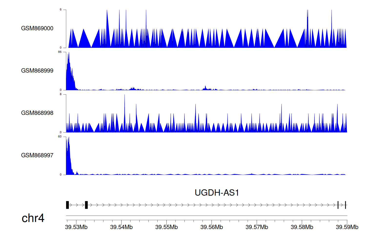 > Dataset: GSE68402 - UGDH-AS1 peak across samples